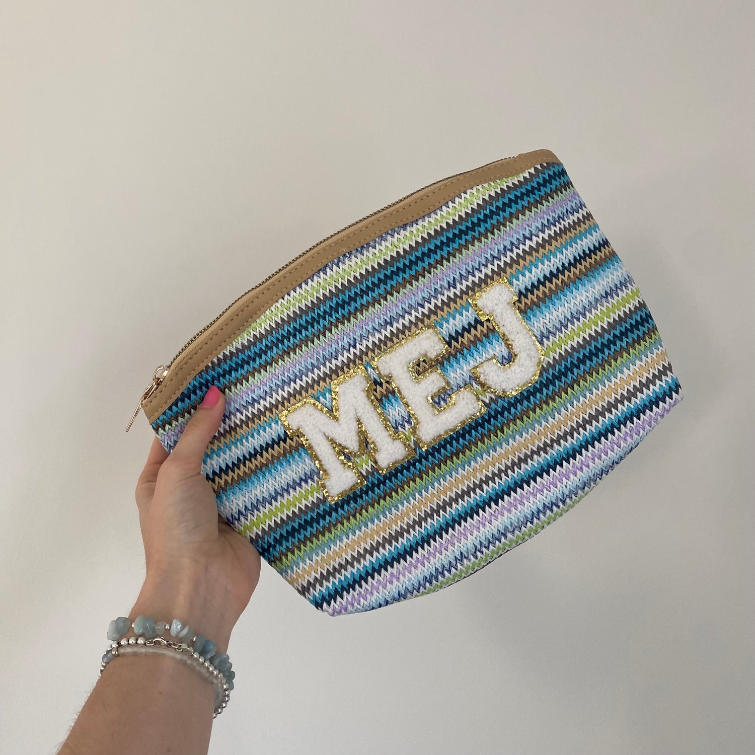 Personalised Chevron Zig Zag Makeup Bag Clutch Patch Toiletry Pouch Cosmetic Bag