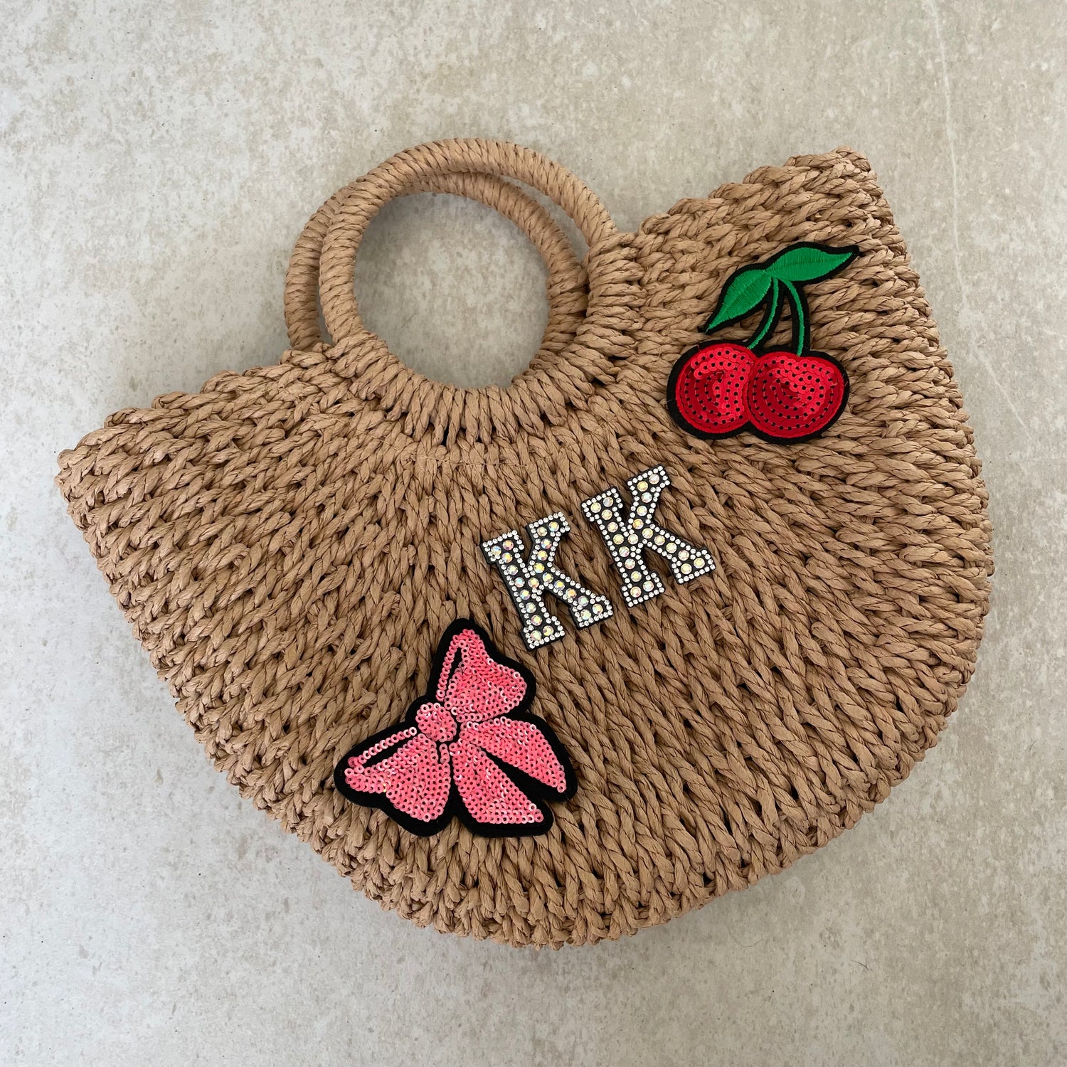 Personalised ADA Bow & Cherry Straw Basket Bag