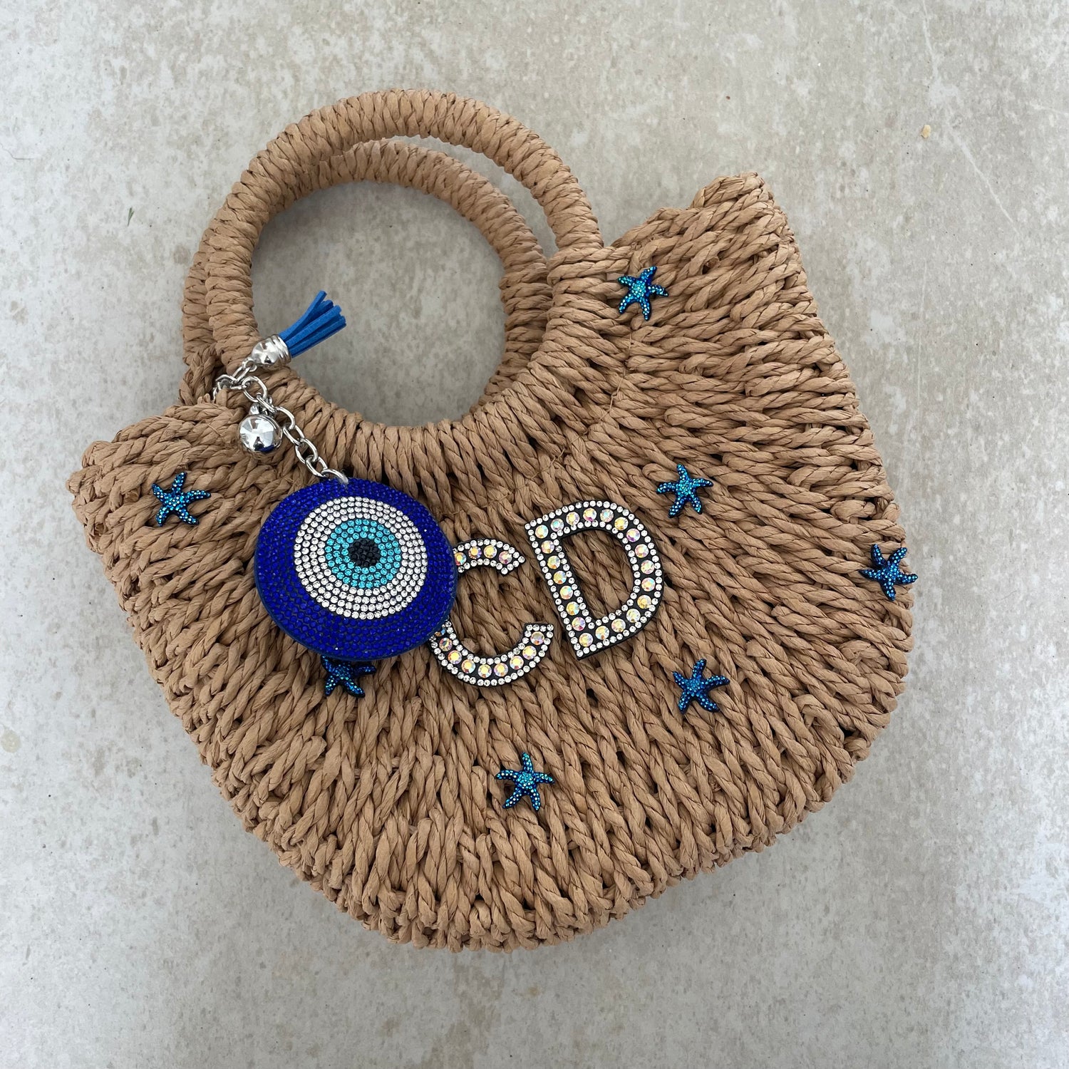 Please note as these are hand woven the sizes might vary by a few cms. Evil eye bag charms available to buy separately.