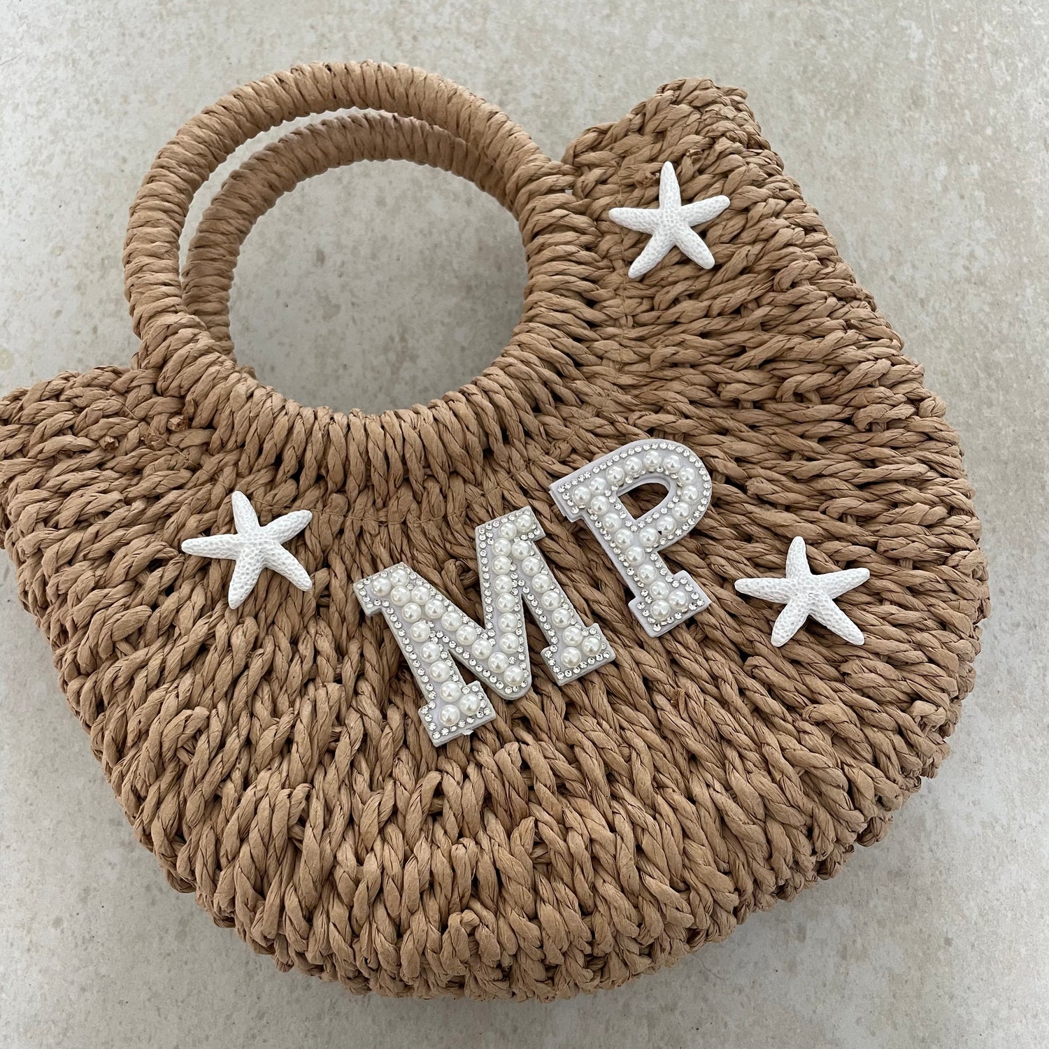 Personalised ADA White Starfish Straw Basket Bag