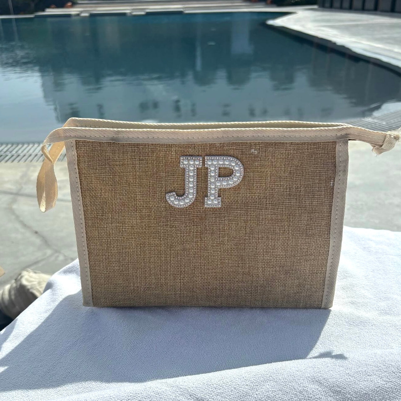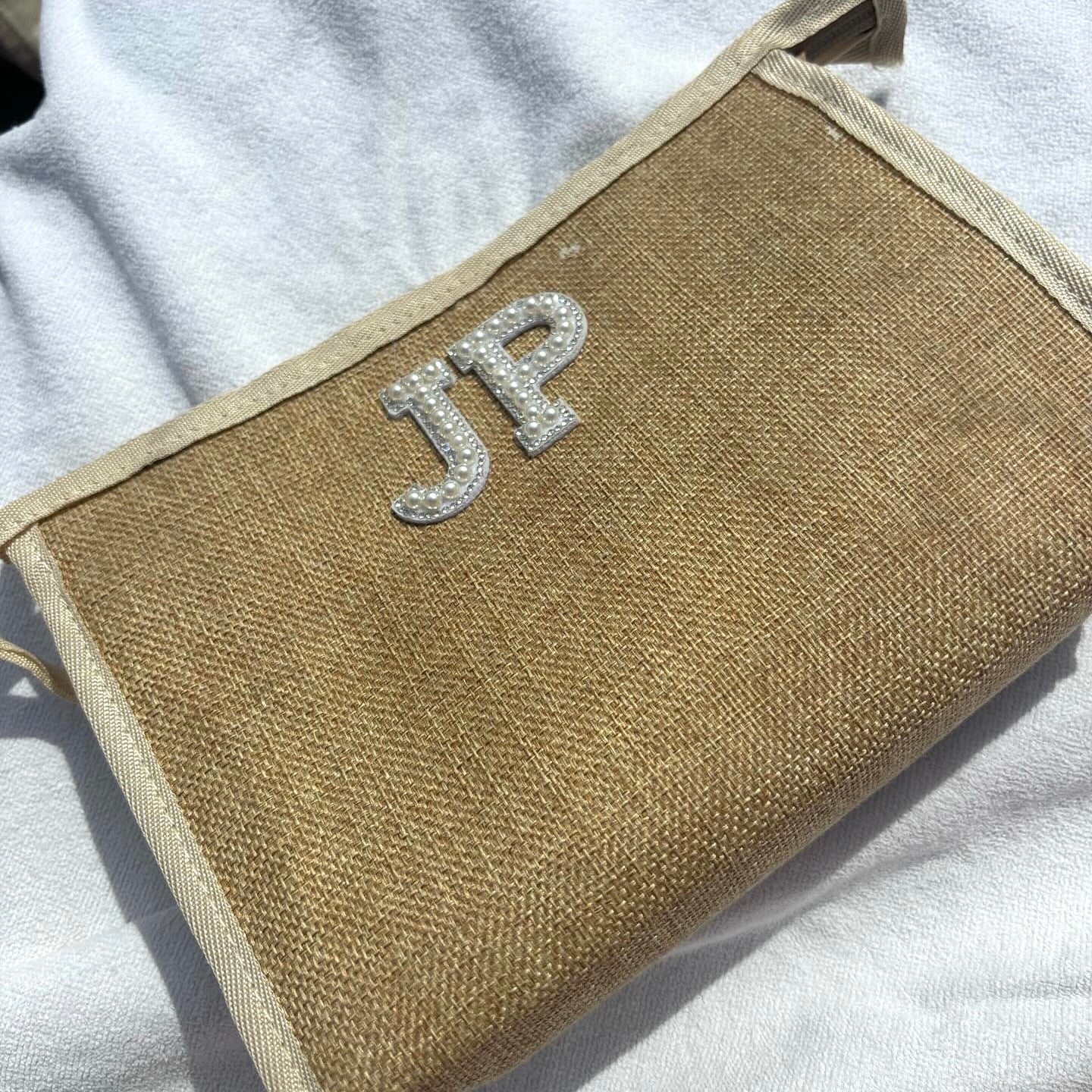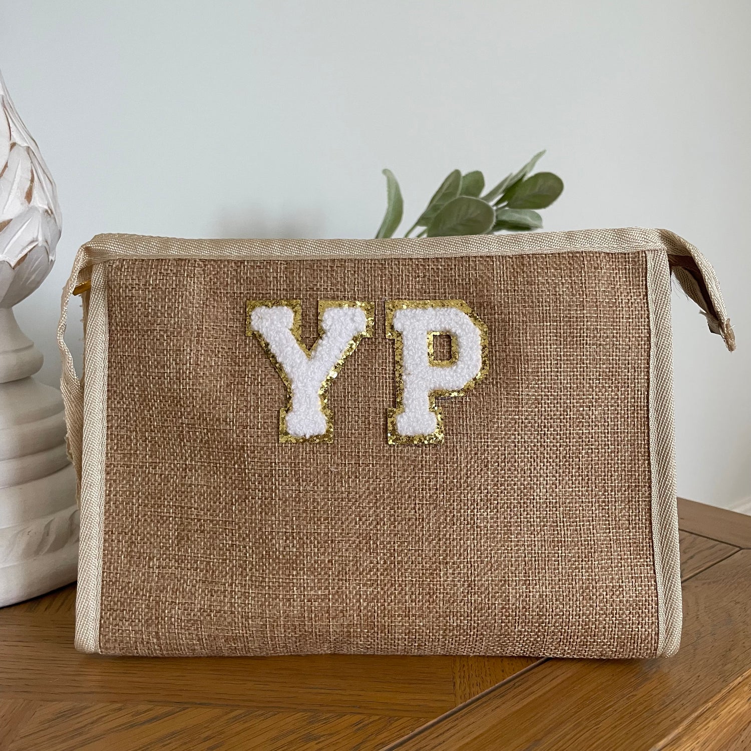 Personalised Patch Canvas Jute Clutch Pouch Makeup Bag