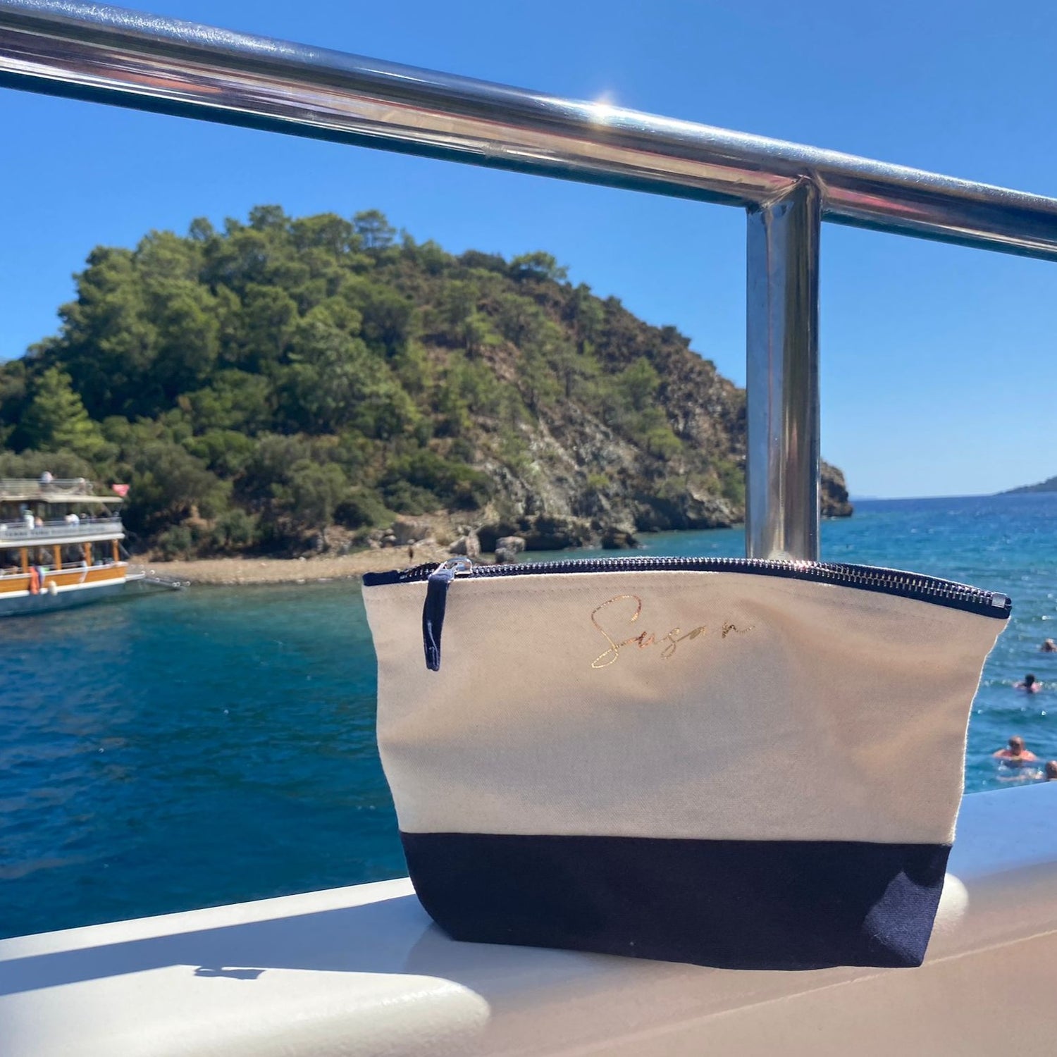 Personalised Canvas Stripe Vanity Makeup Toiletry Cosmetic Bag