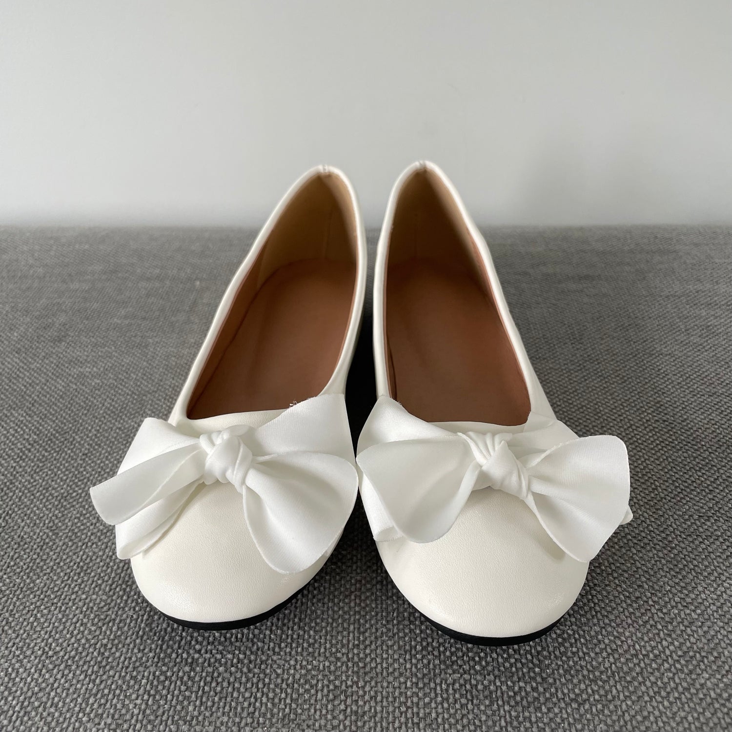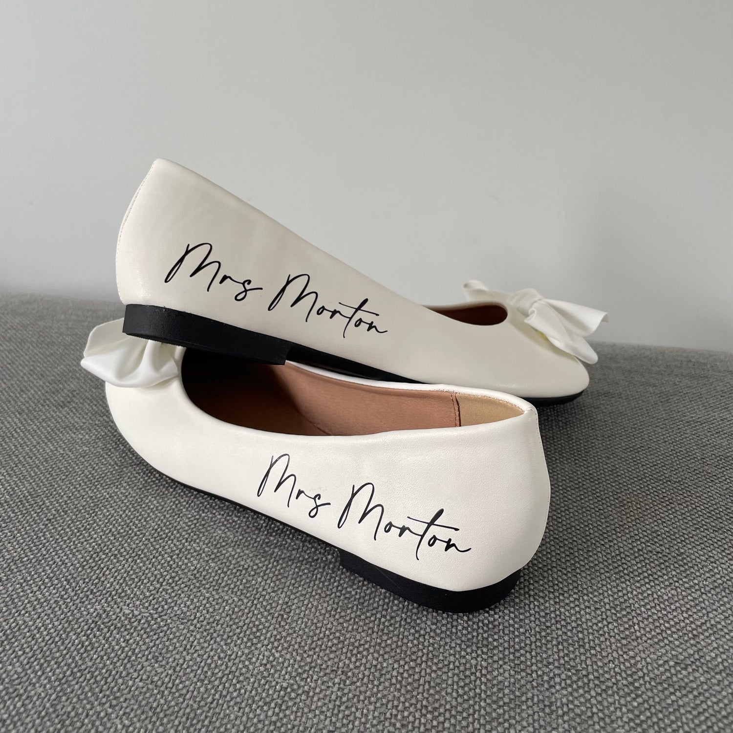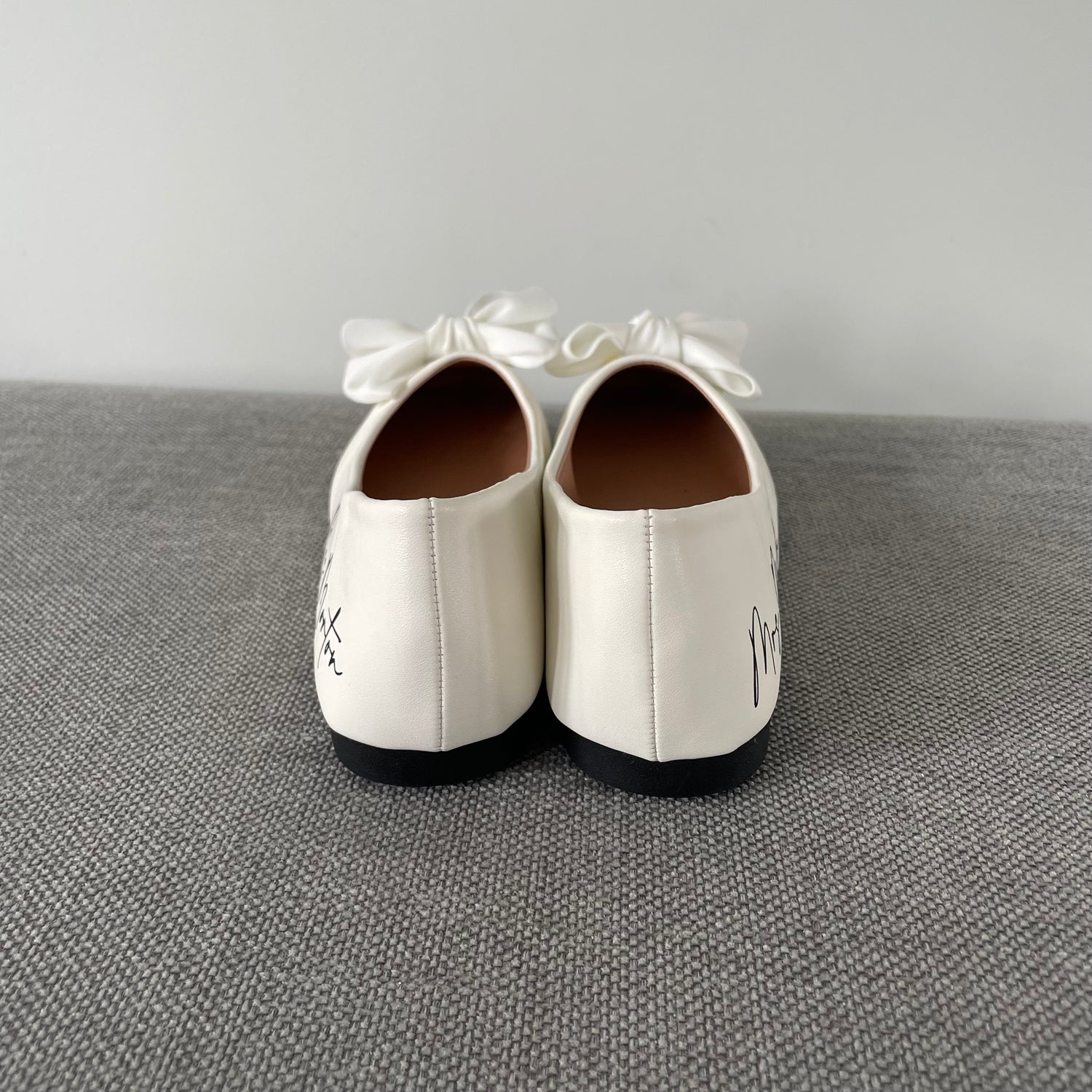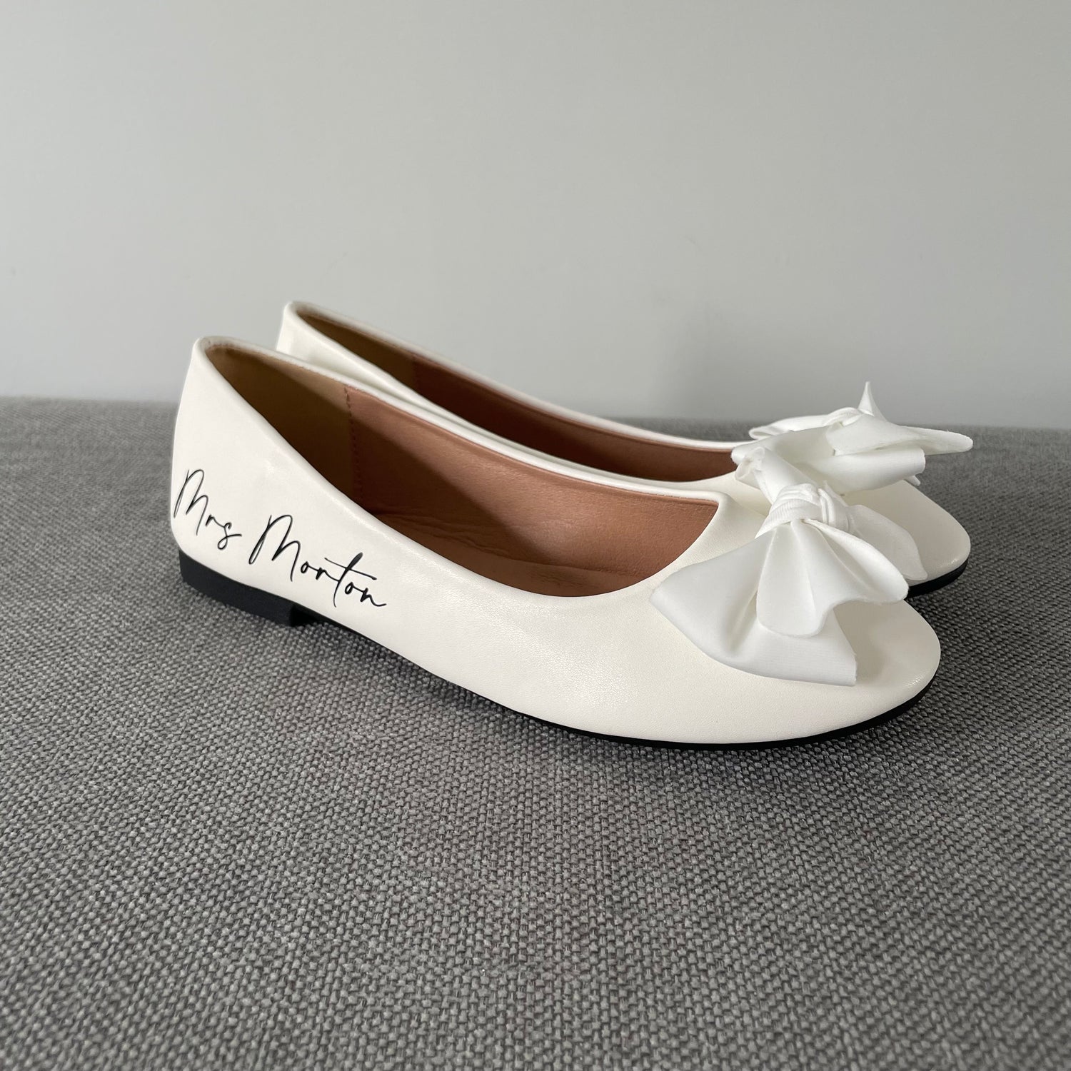 Personalised Bridal Prom White Bow Pump Slip On Flats