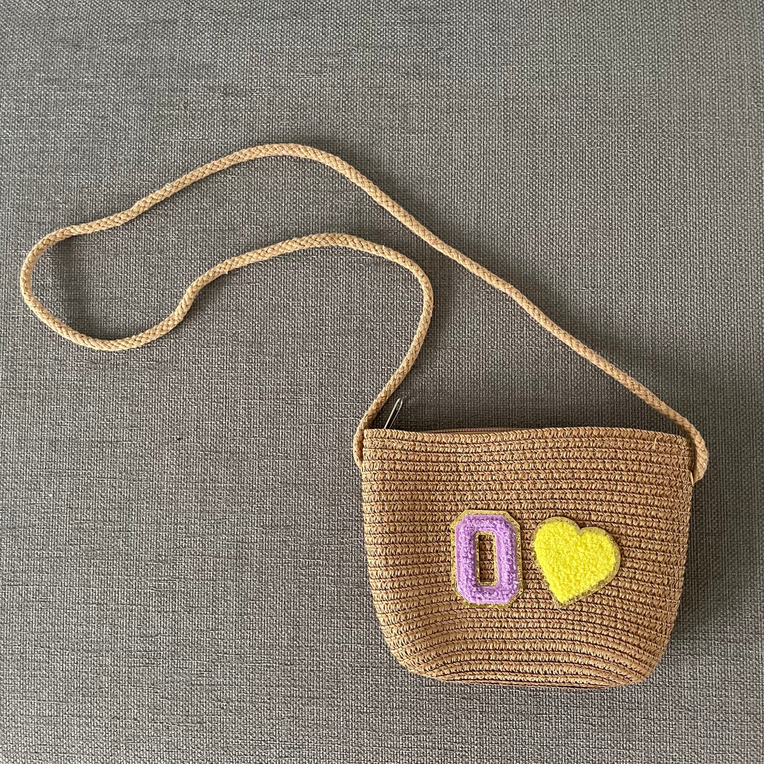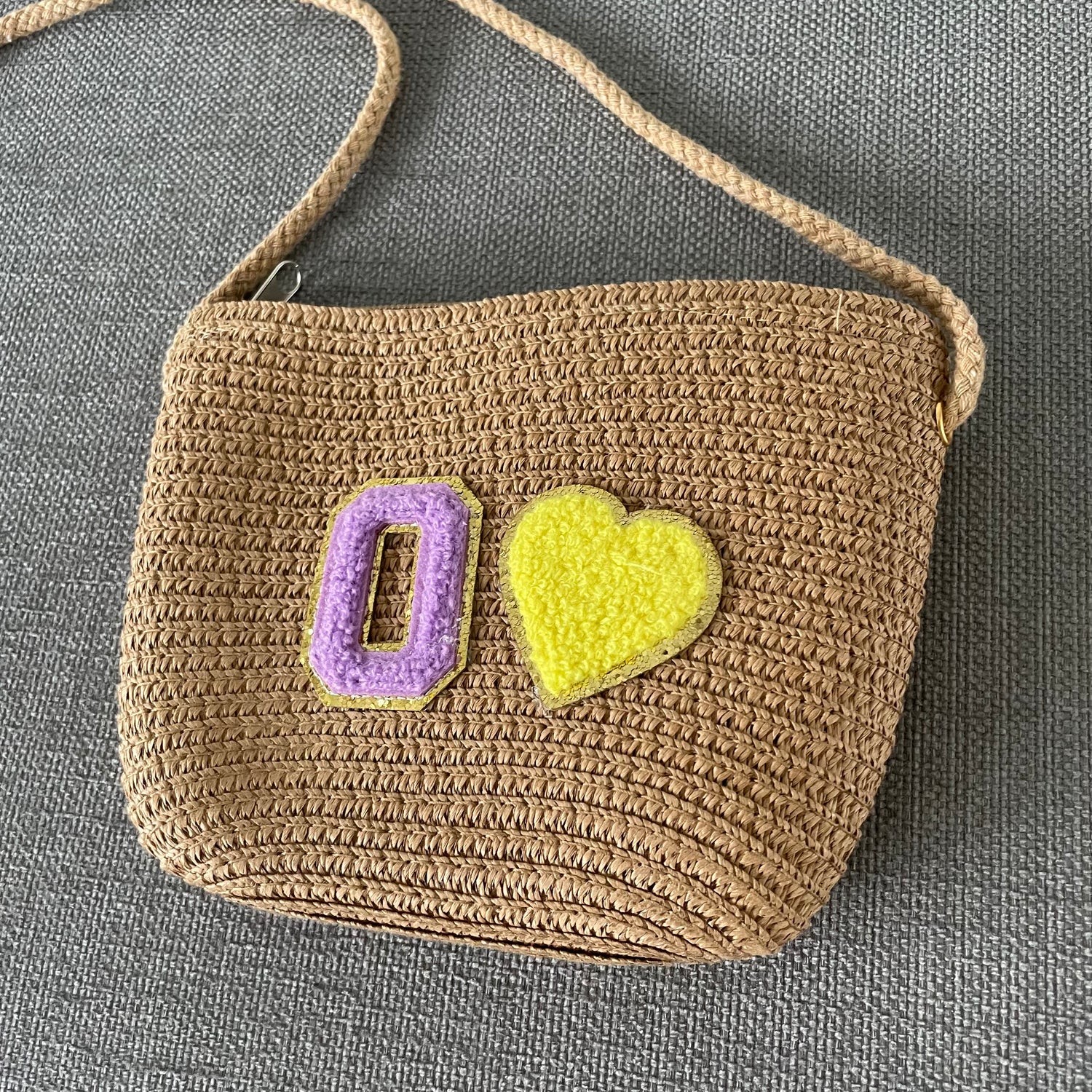 Personalised Childrens Patch Heart Straw Cross Body Bag