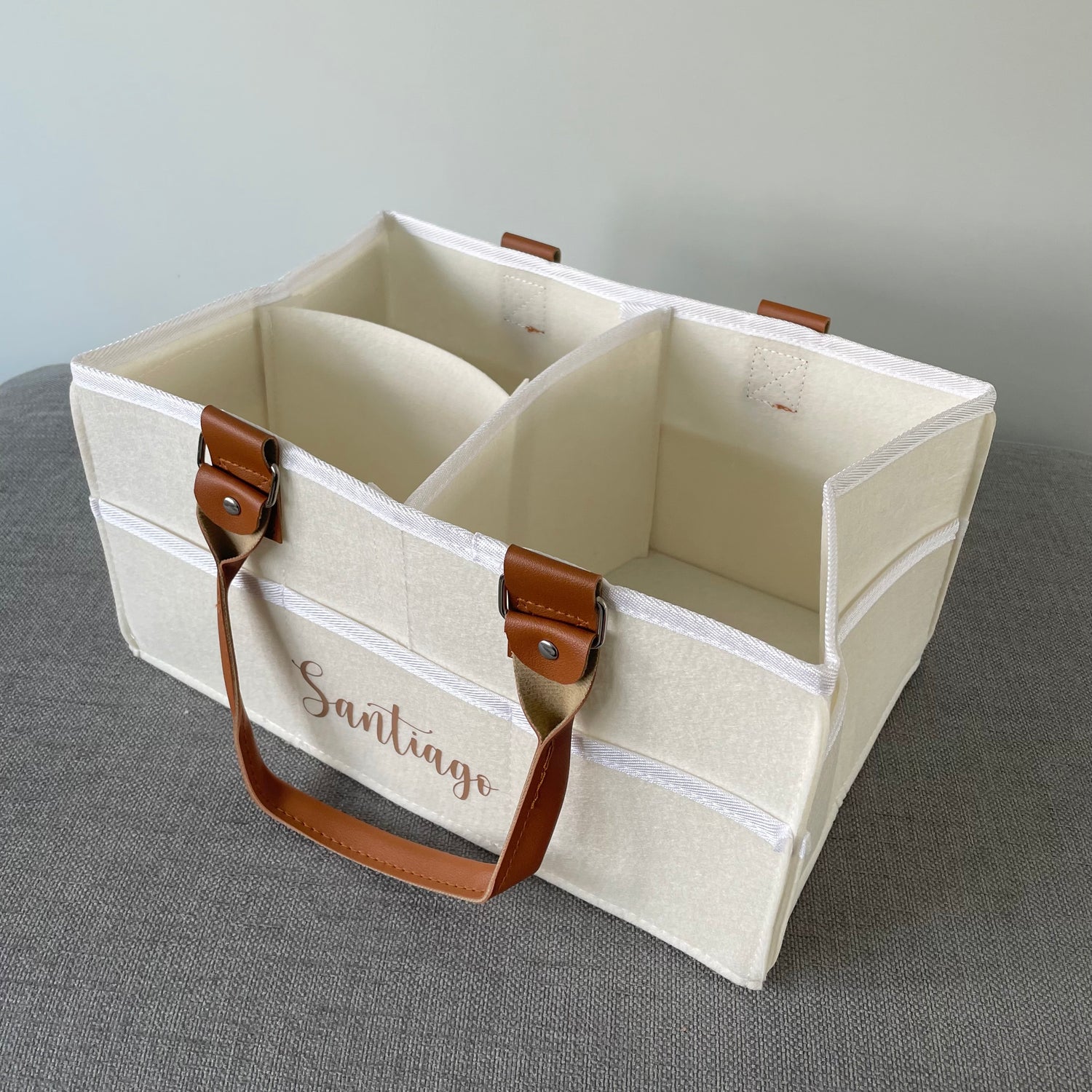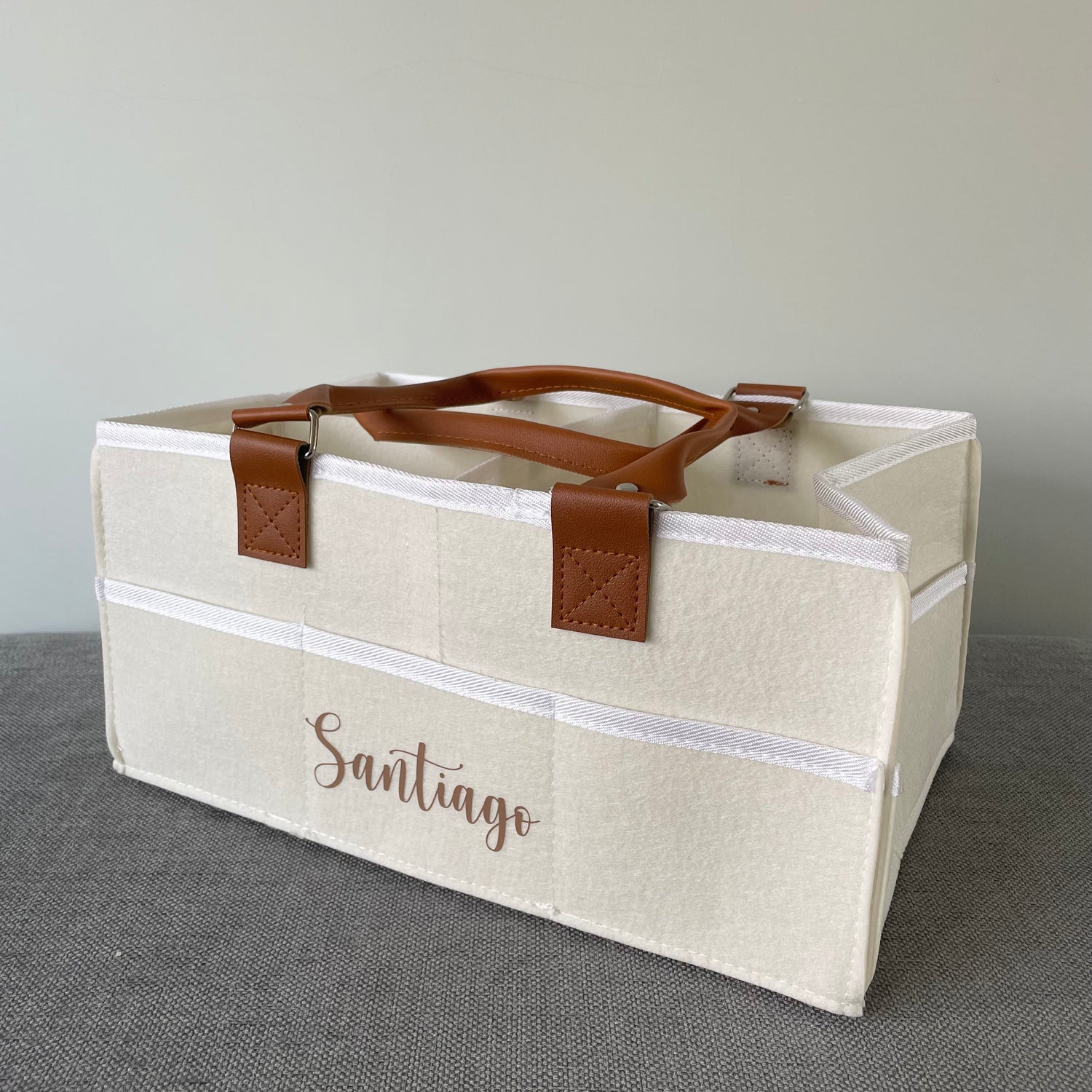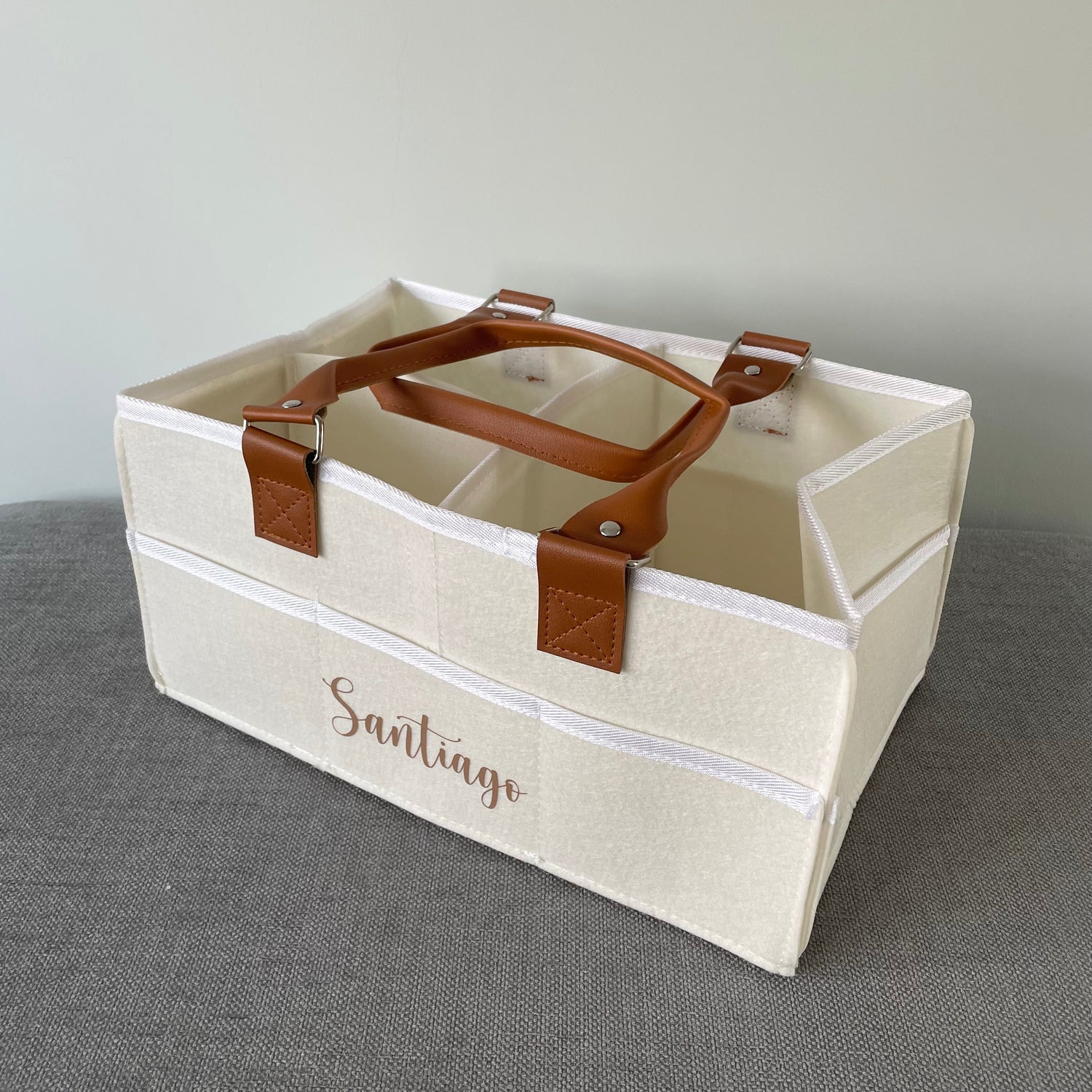 Personalised Felt With Brown Handles Nappy Changing Organiser Bag