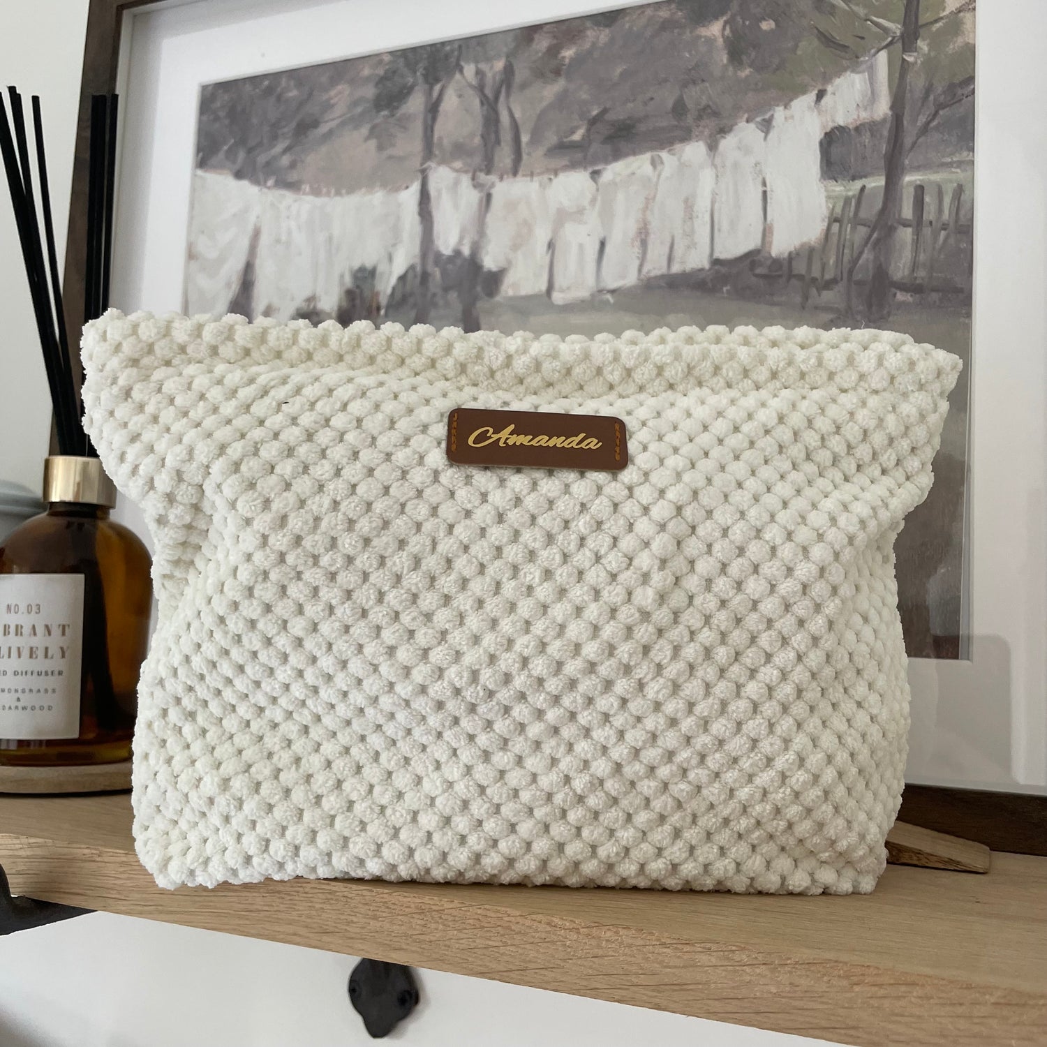 Personalised Ivory Soft Fluffy Makeup Clutch Bag
