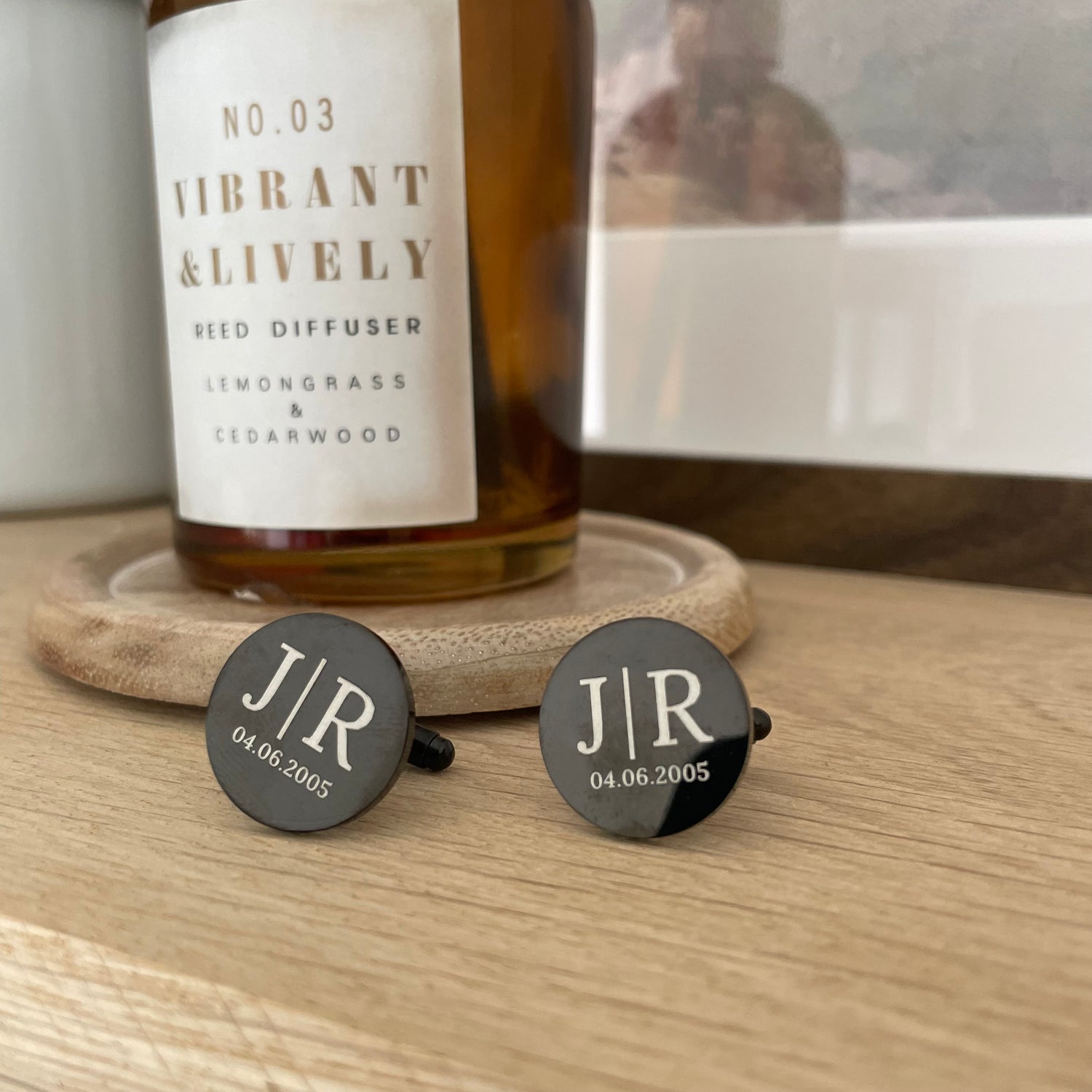 Personalised Men’s Monogram & Date Metal Cufflinks
