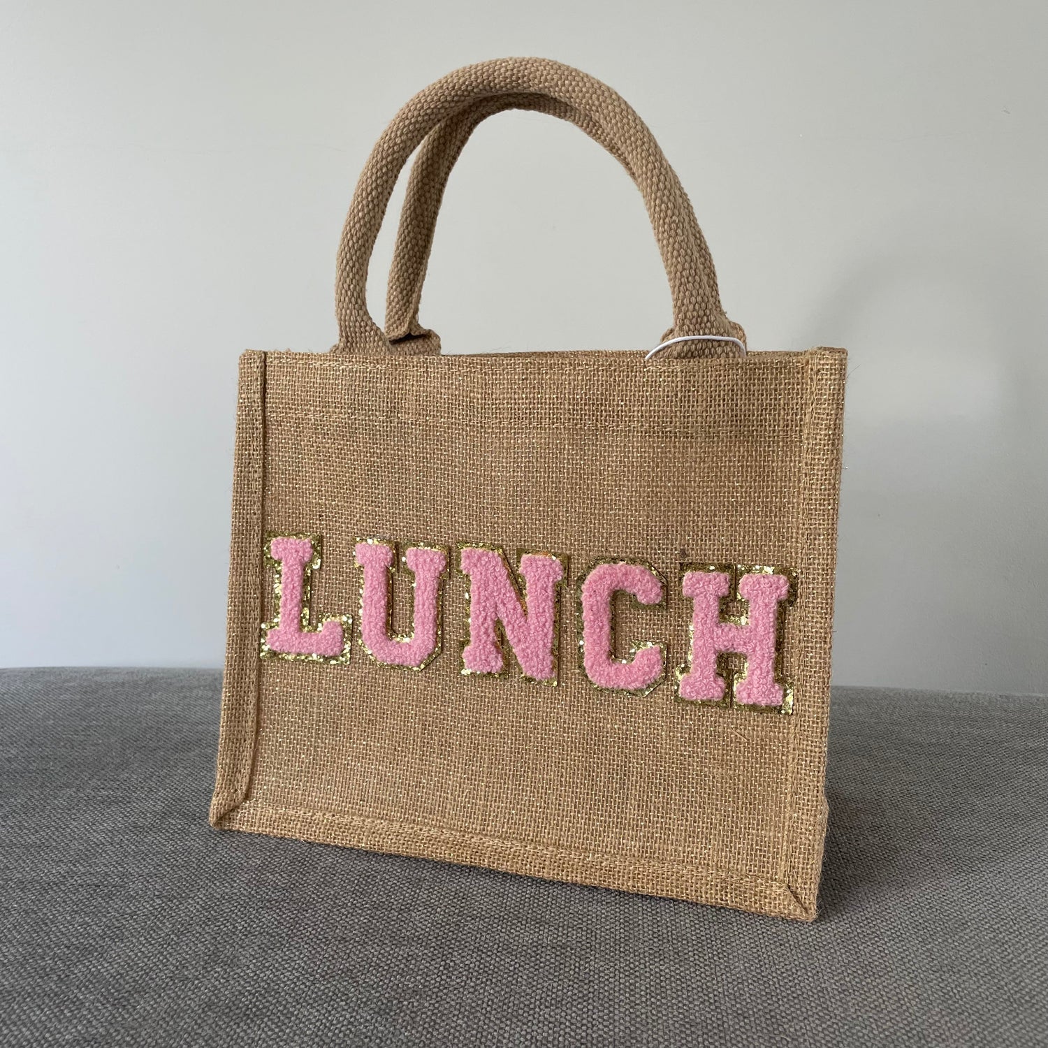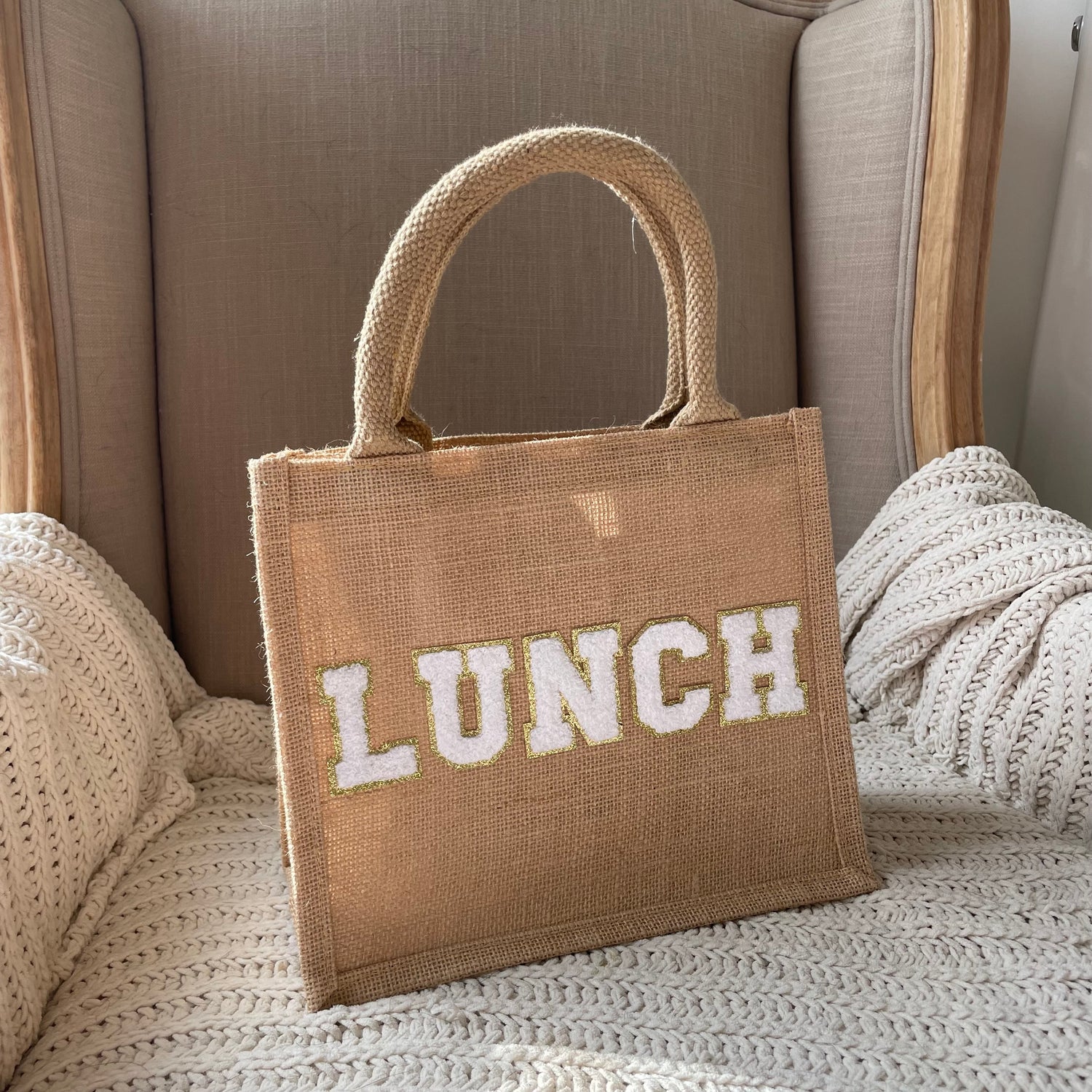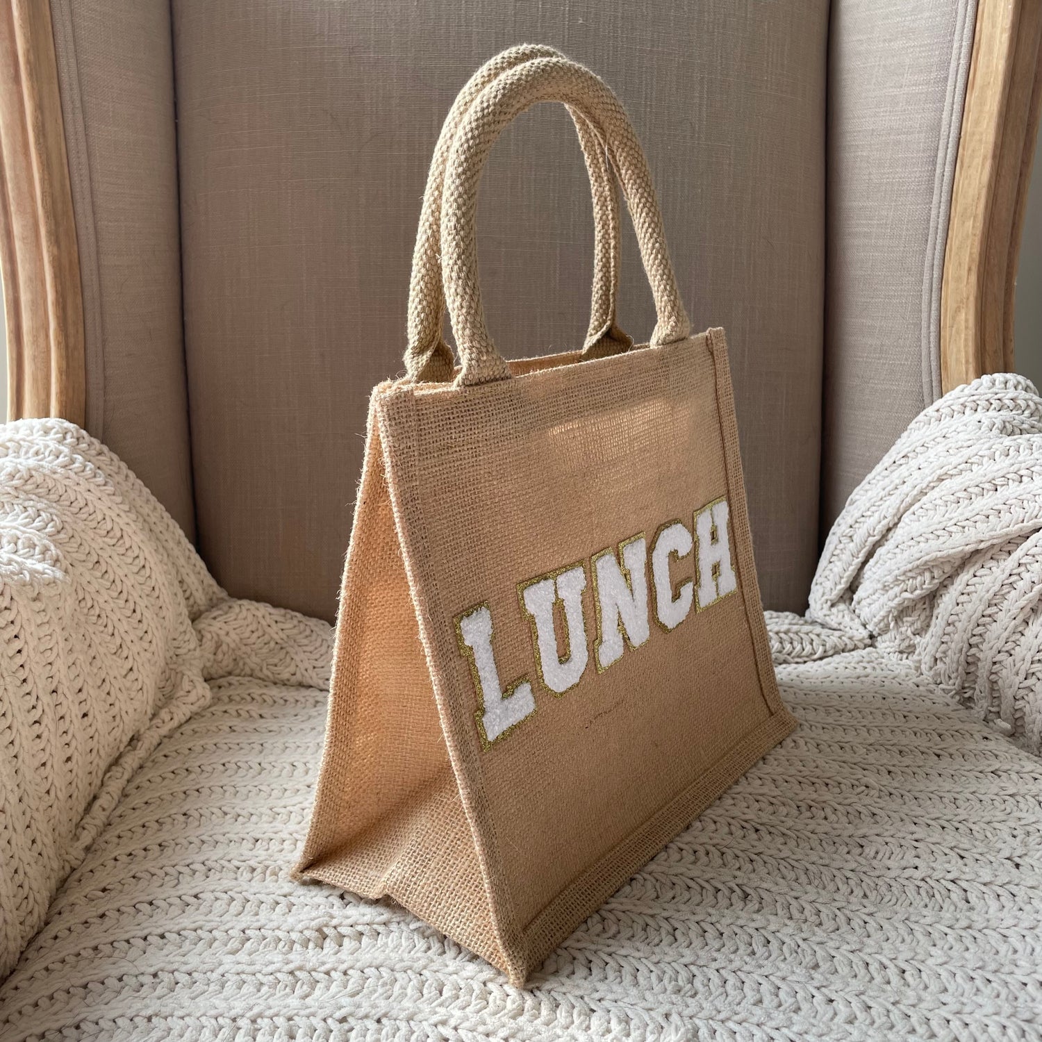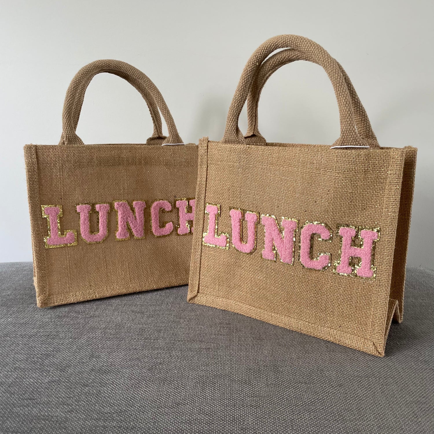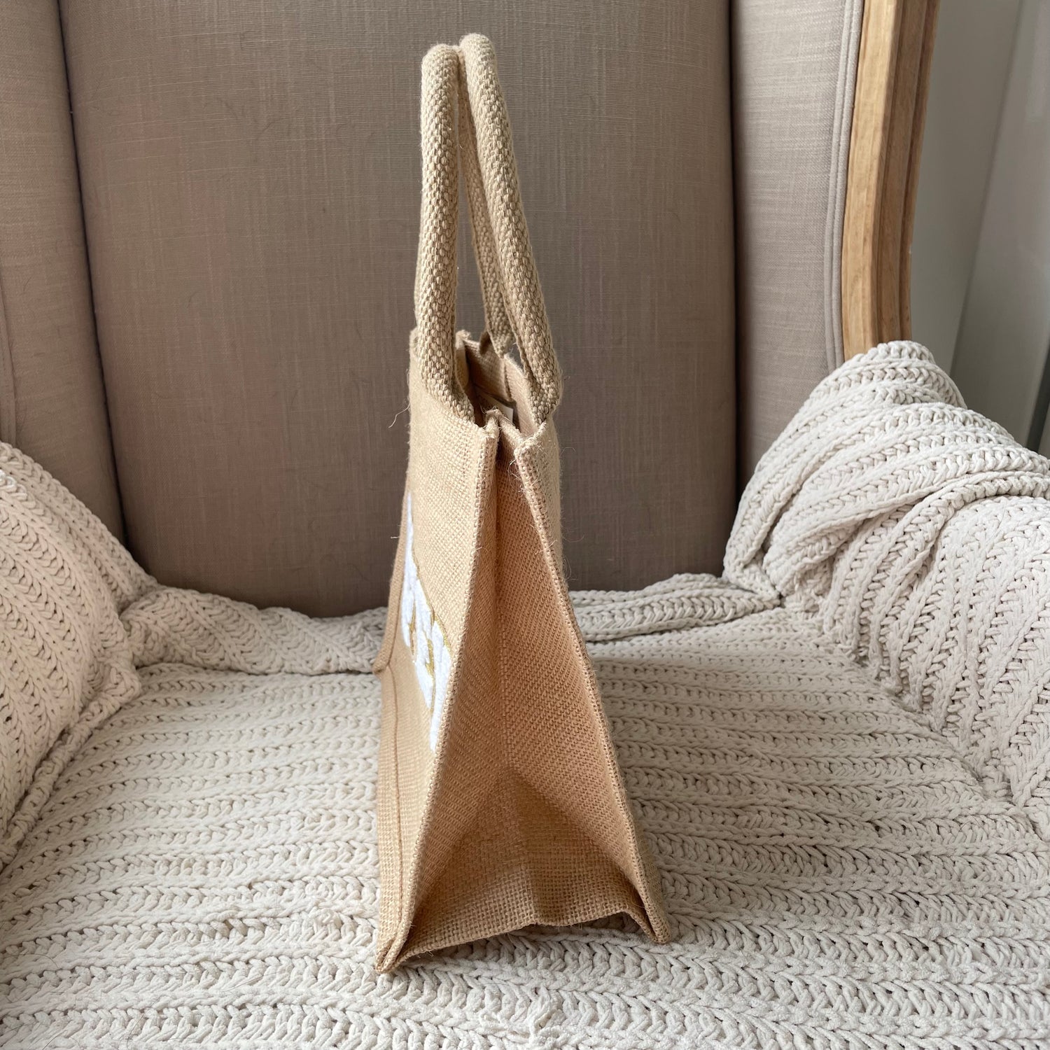 Personalised Patch 5 Letters Square Jute Lunch Bridesmaid Top Handle Gift Bag
