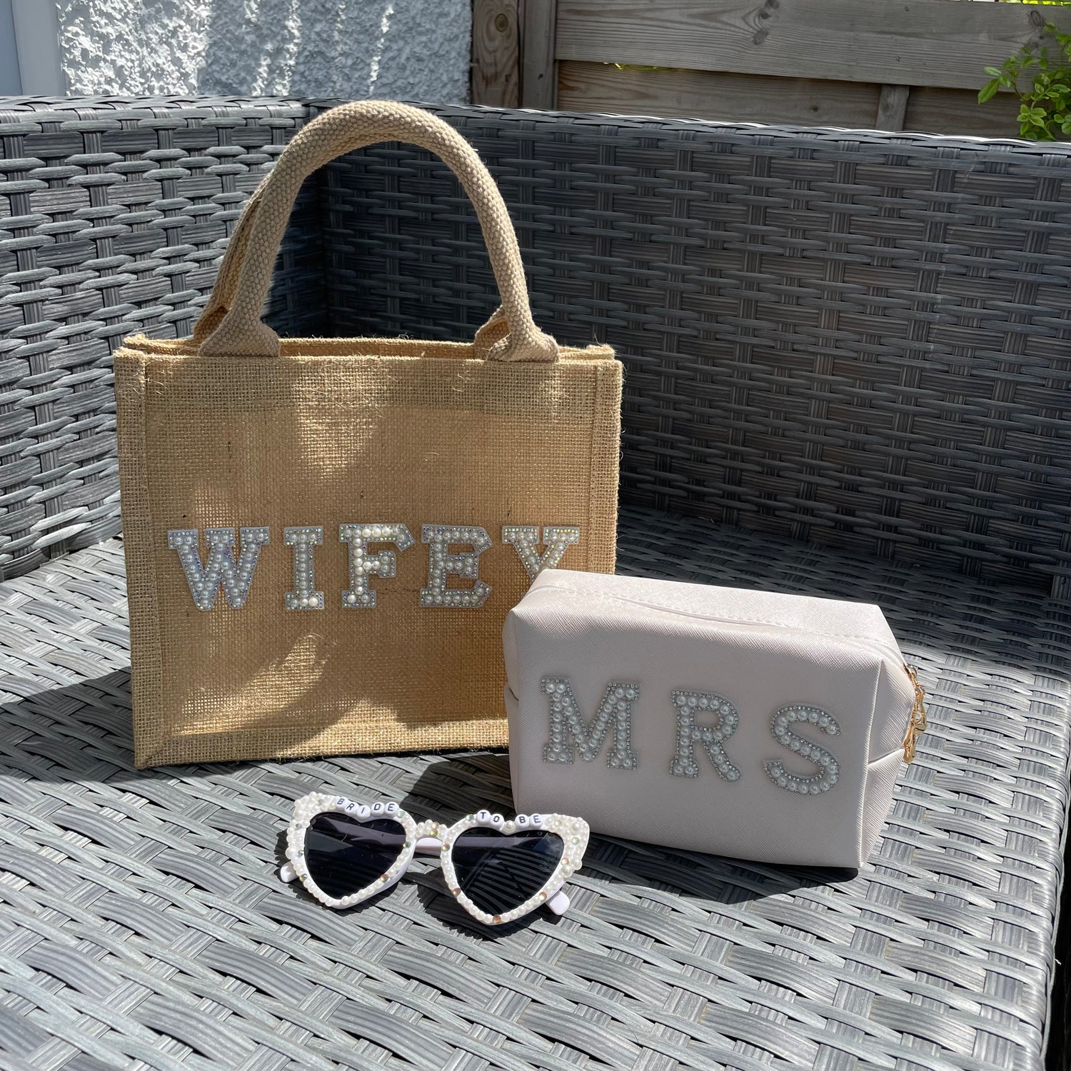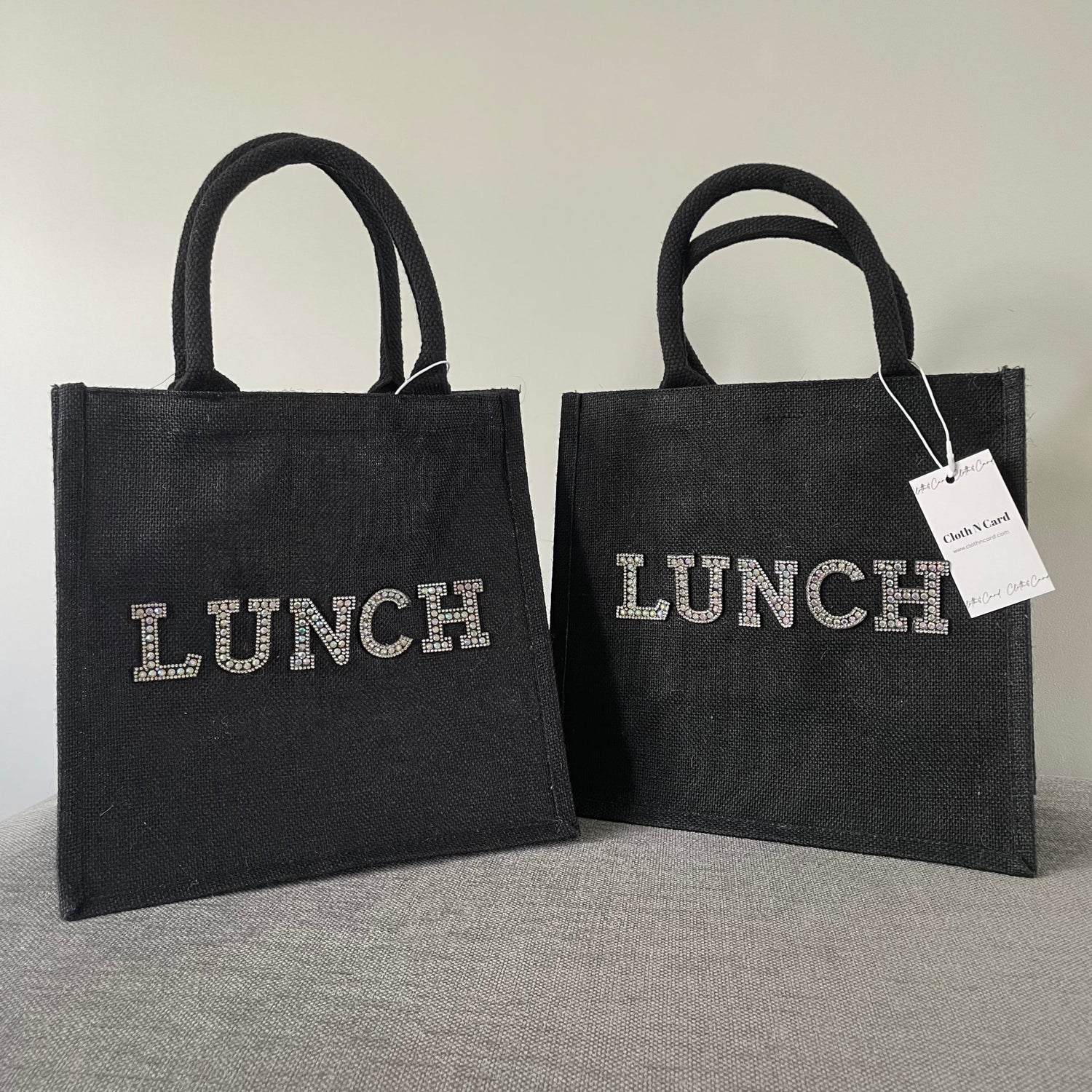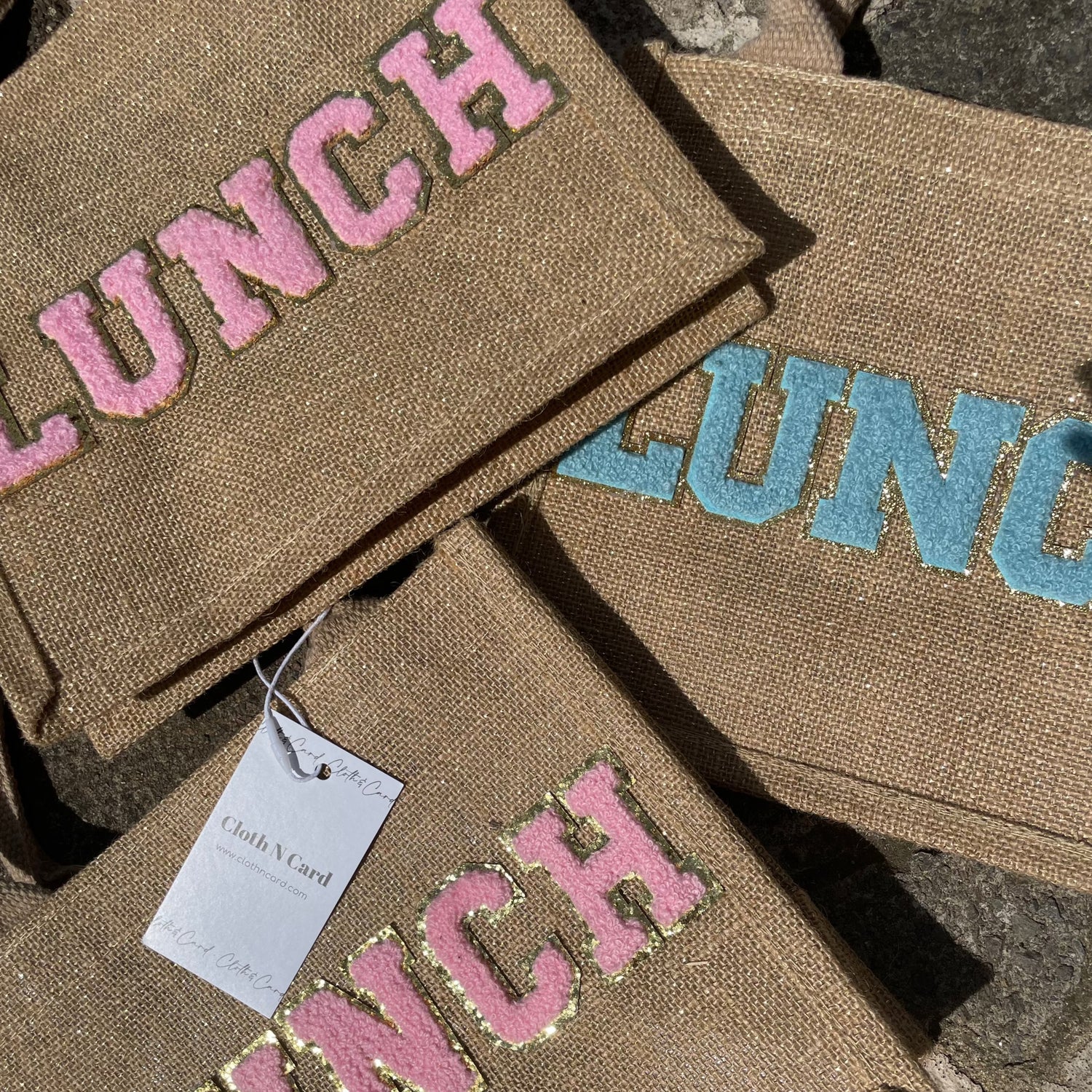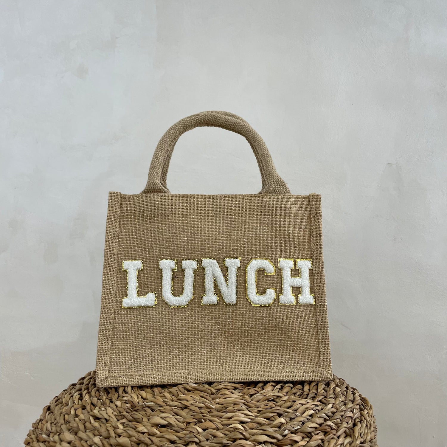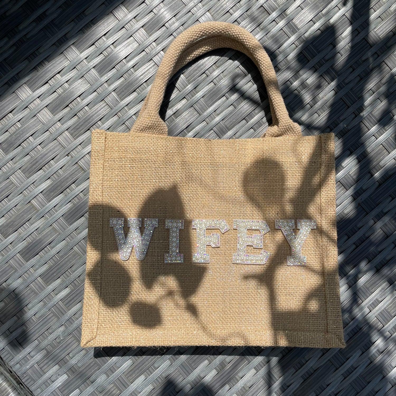 Personalised Patch 5 Letters Square Jute Lunch Bridesmaid Top Handle Gift Bag
