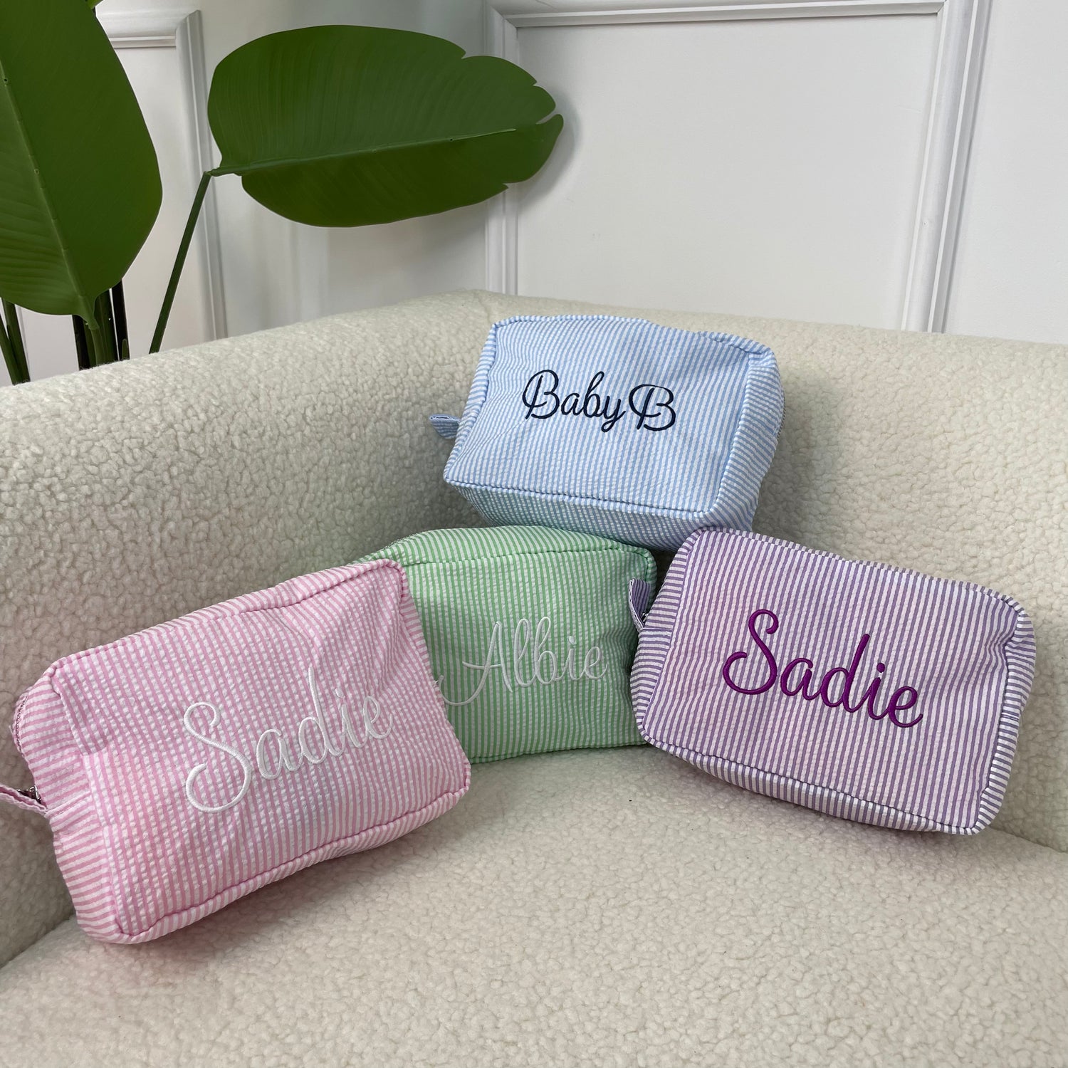 Personalised Cotton Stripe Embroidered Makeup Cosmetic Bag