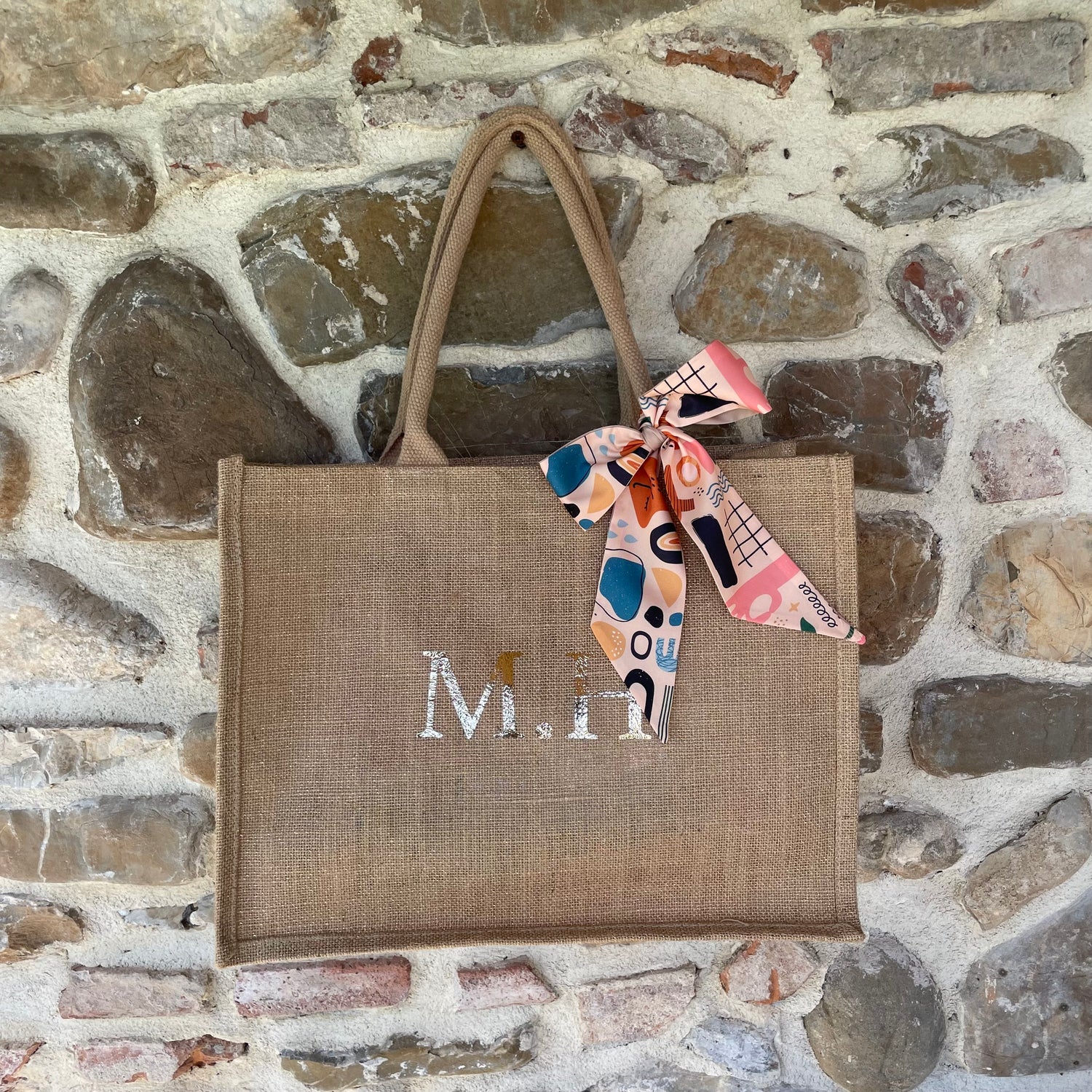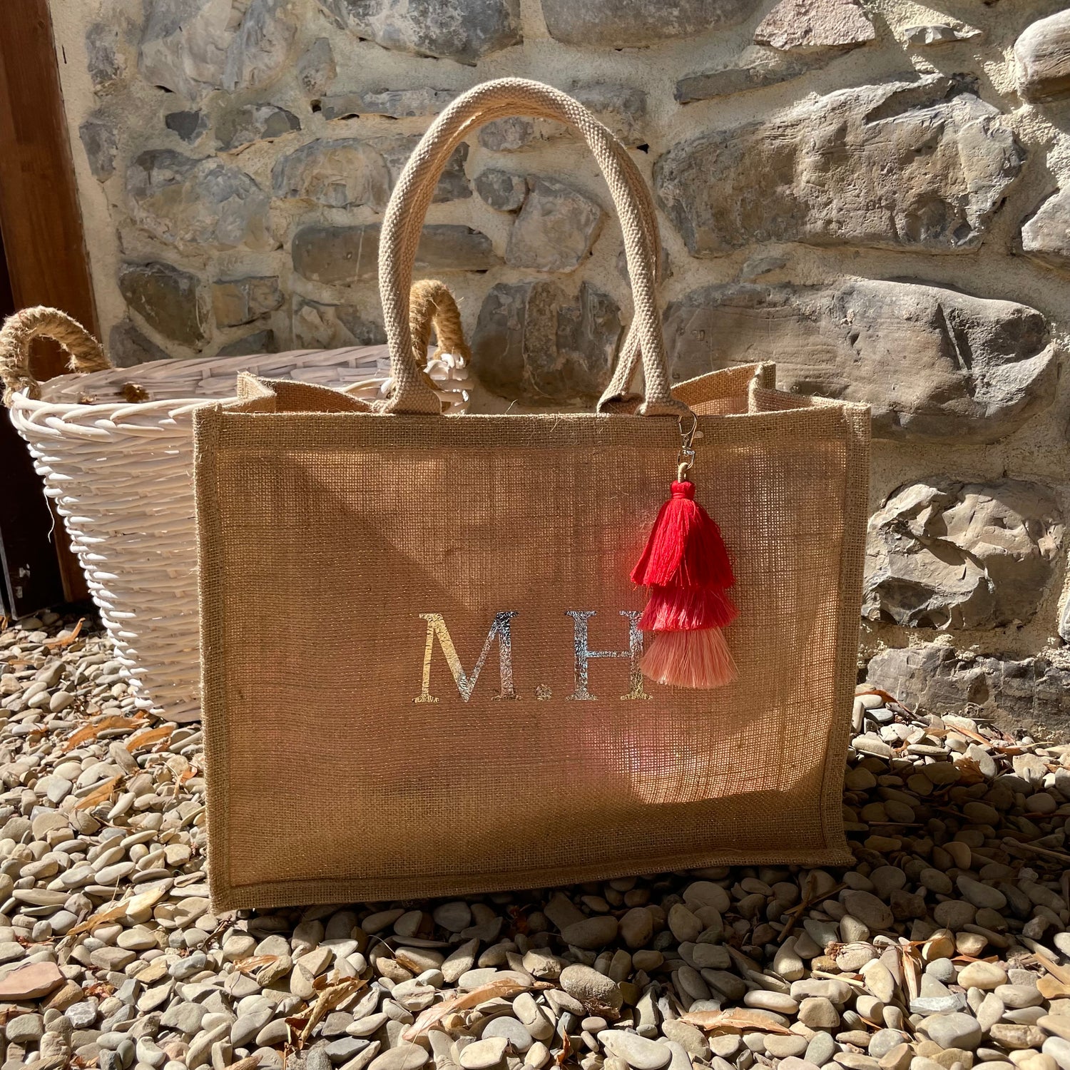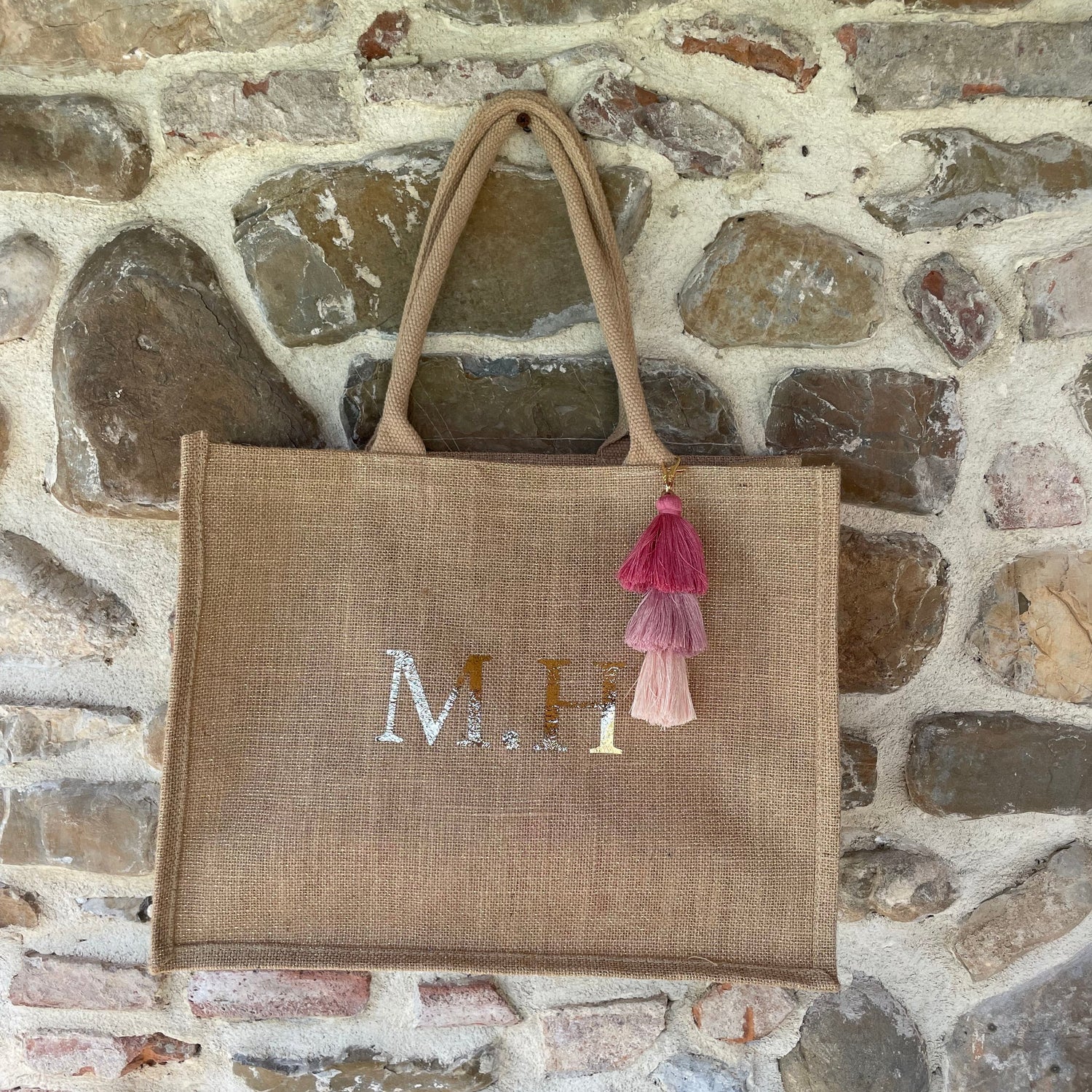 Personalised Square Gold Reflective Jute Shoulder Beach Shopper Tote Bag