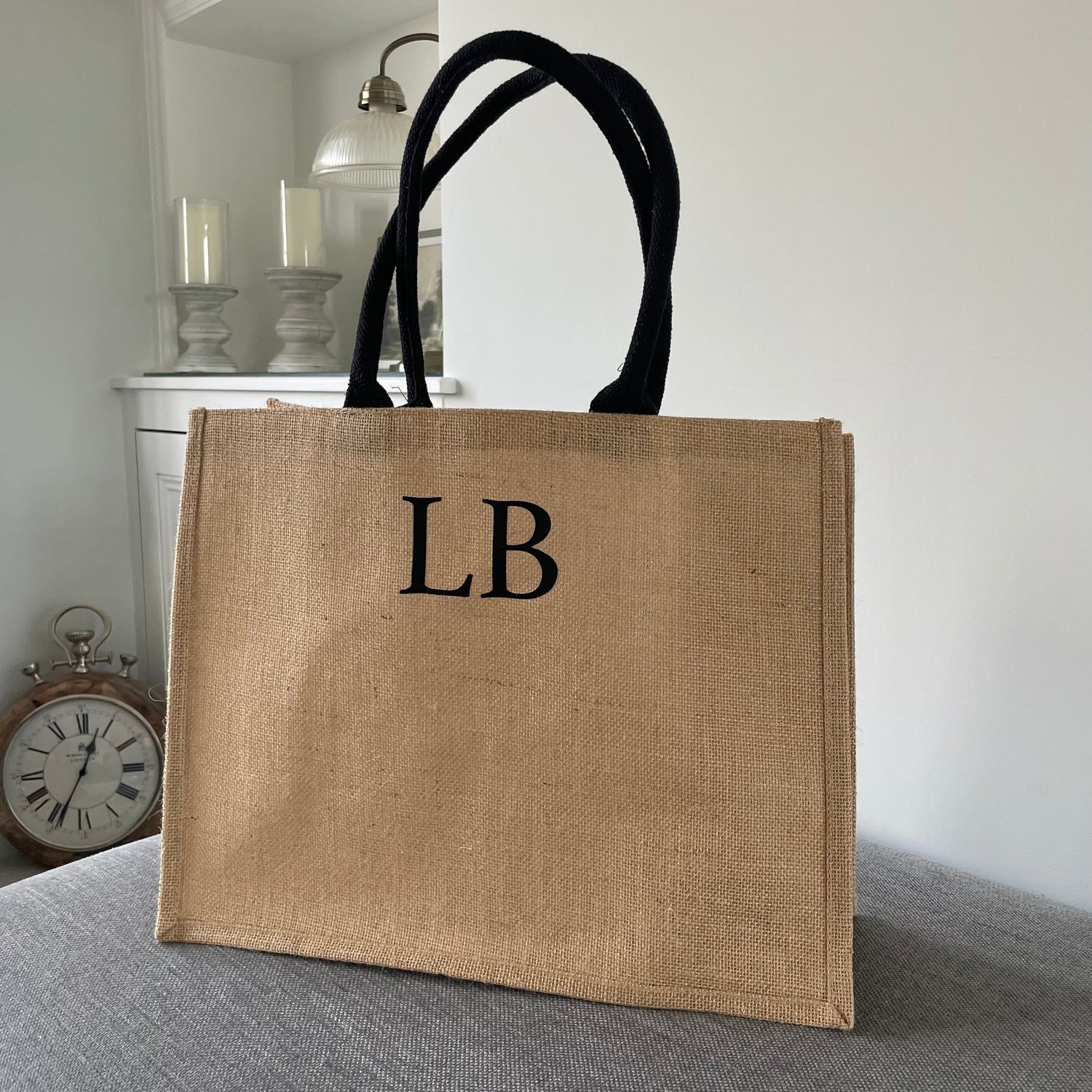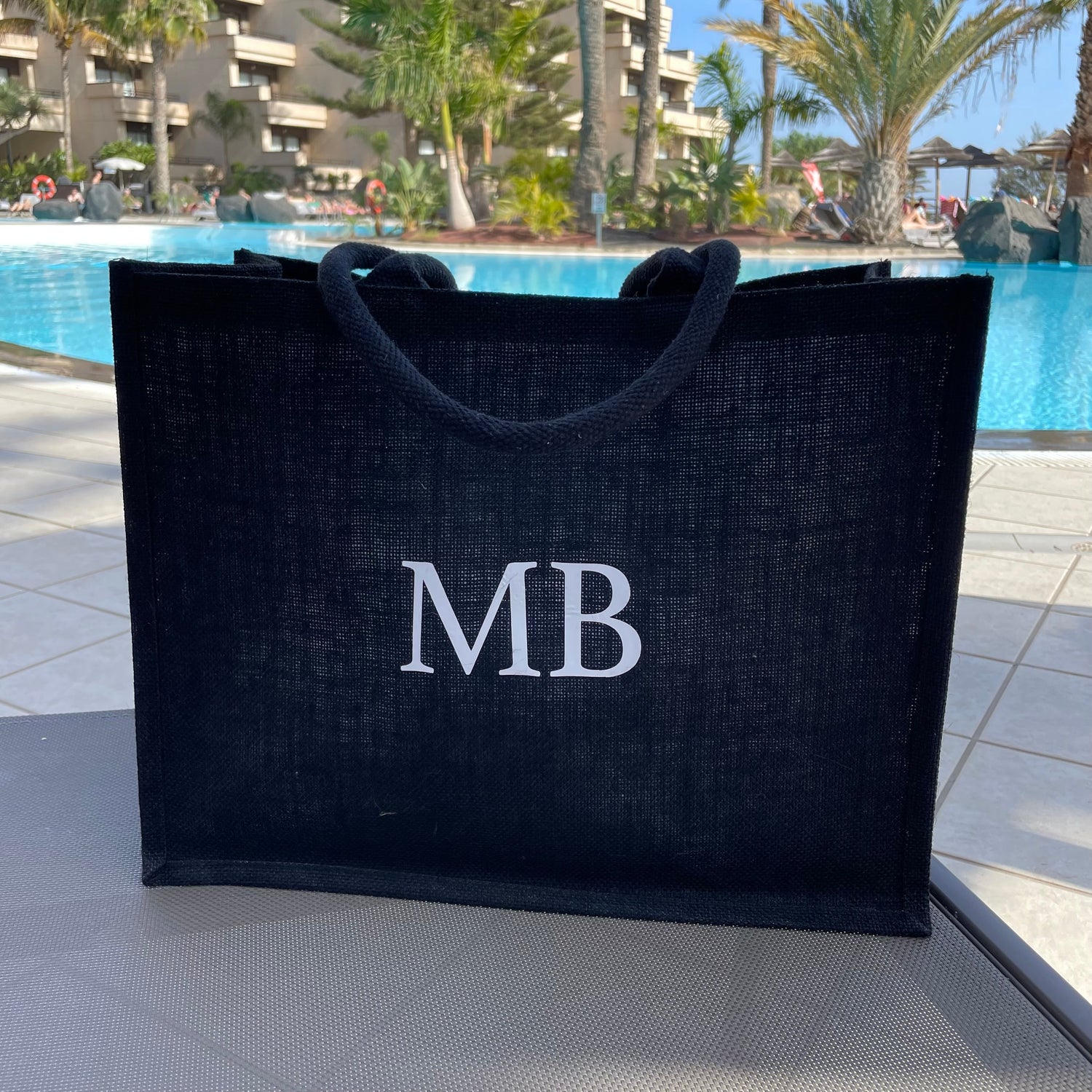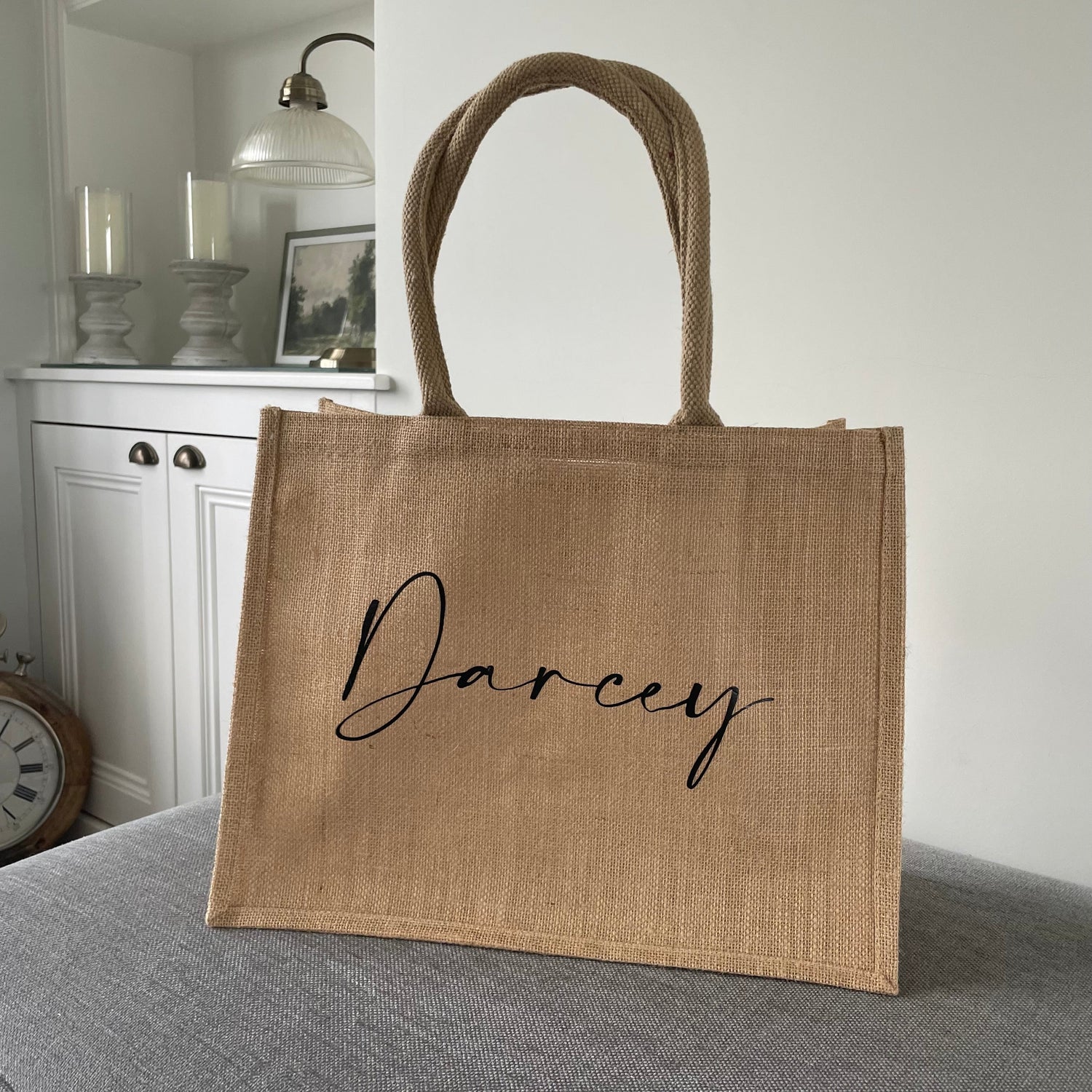 Personalised Square Jute Shoulder Beach Shopper Tote Bag