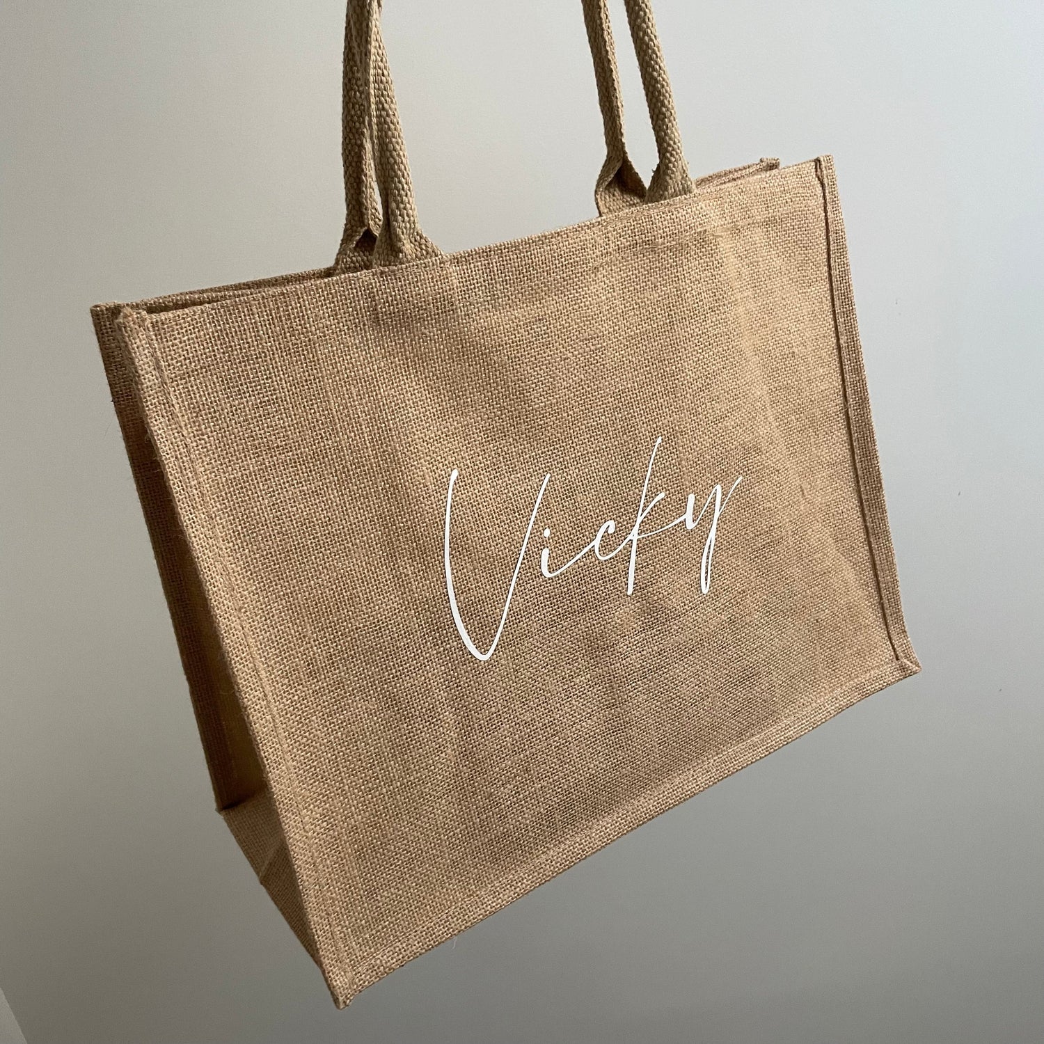 Personalised Square Jute Shoulder Beach Shopper Tote Bag