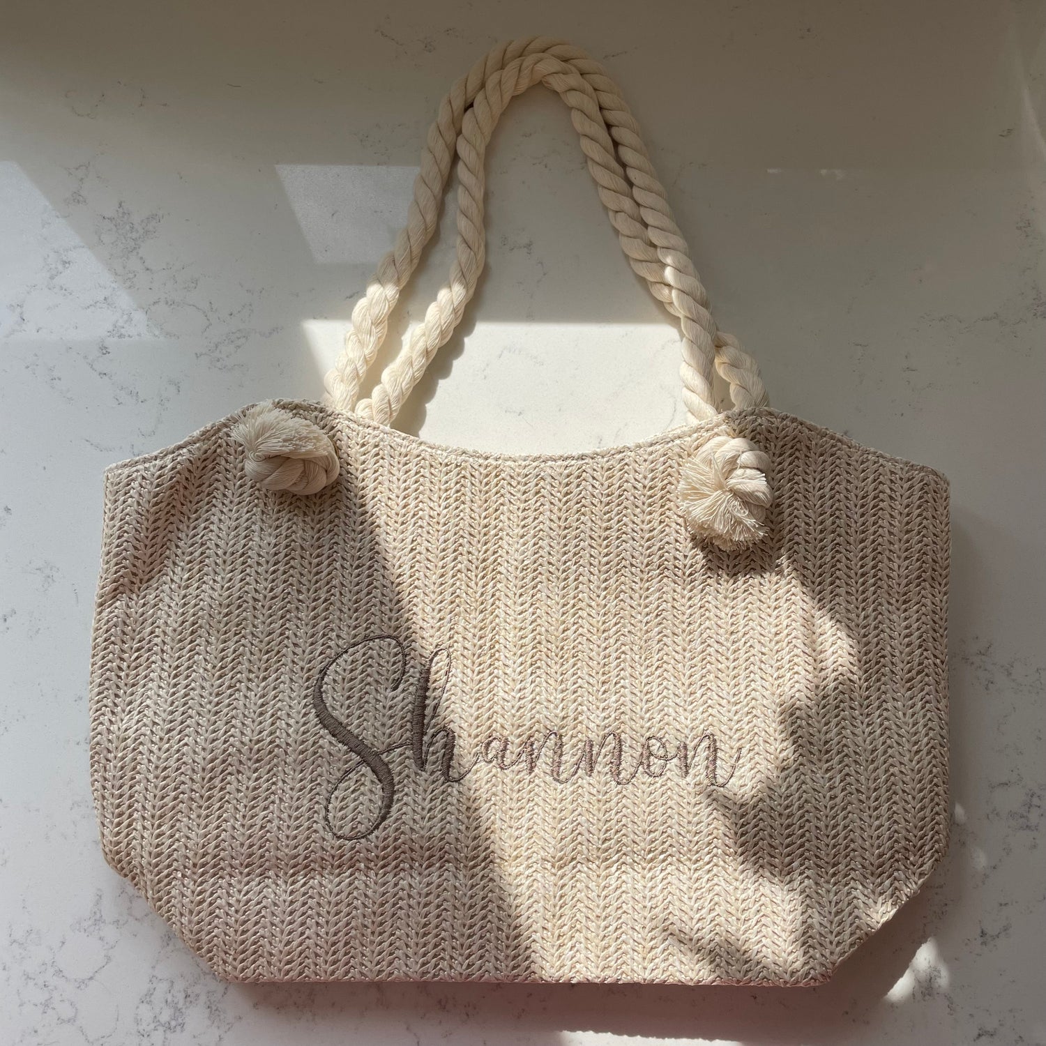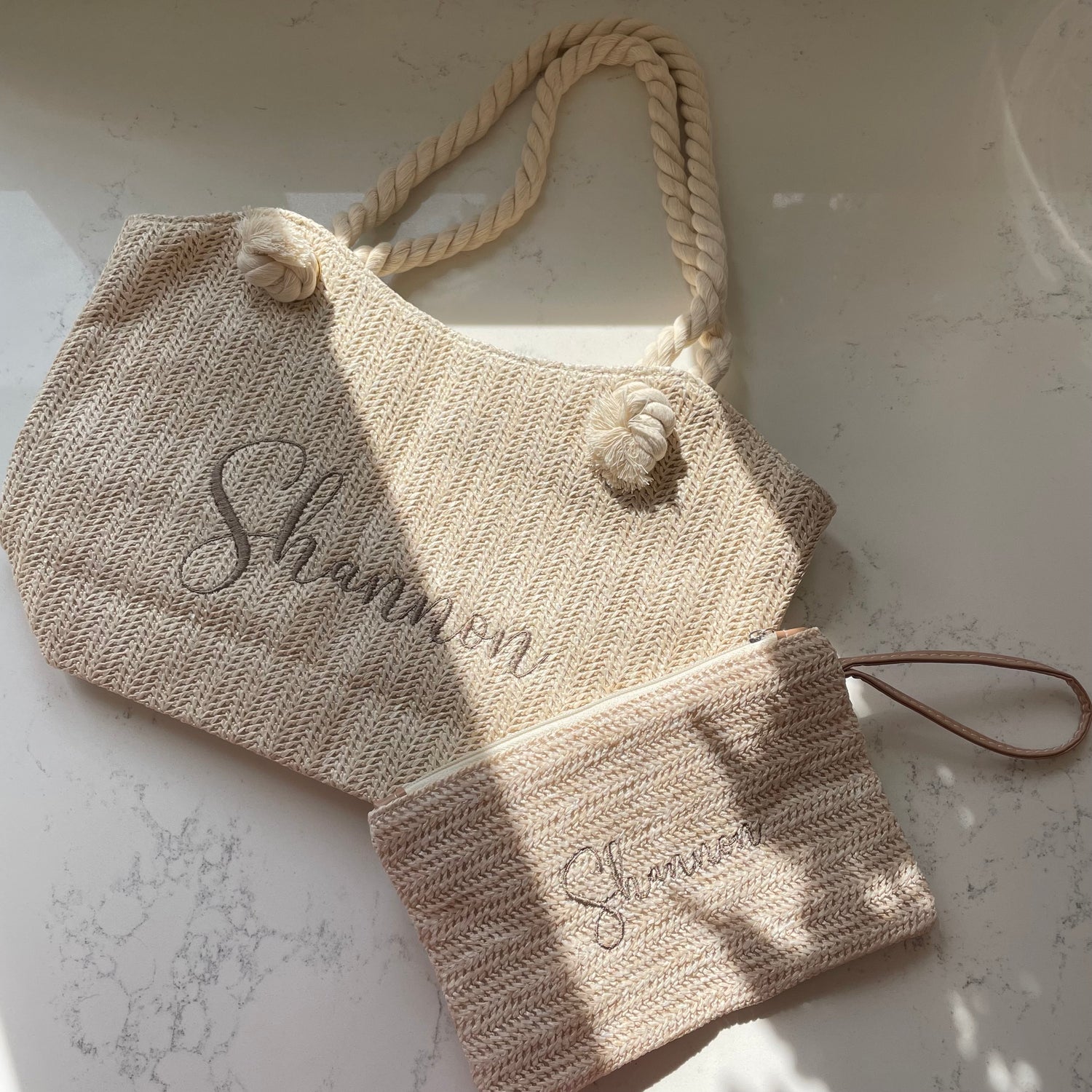 Personalised WILLOW Straw Rope Handle Tote & Clutch bag