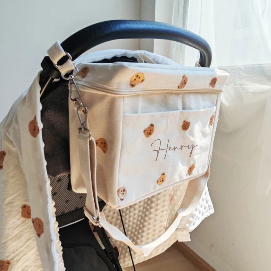 Personalised Teddy Bear Box Stroller Buggy Organiser Baby Bag