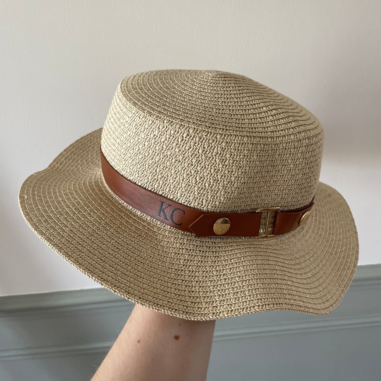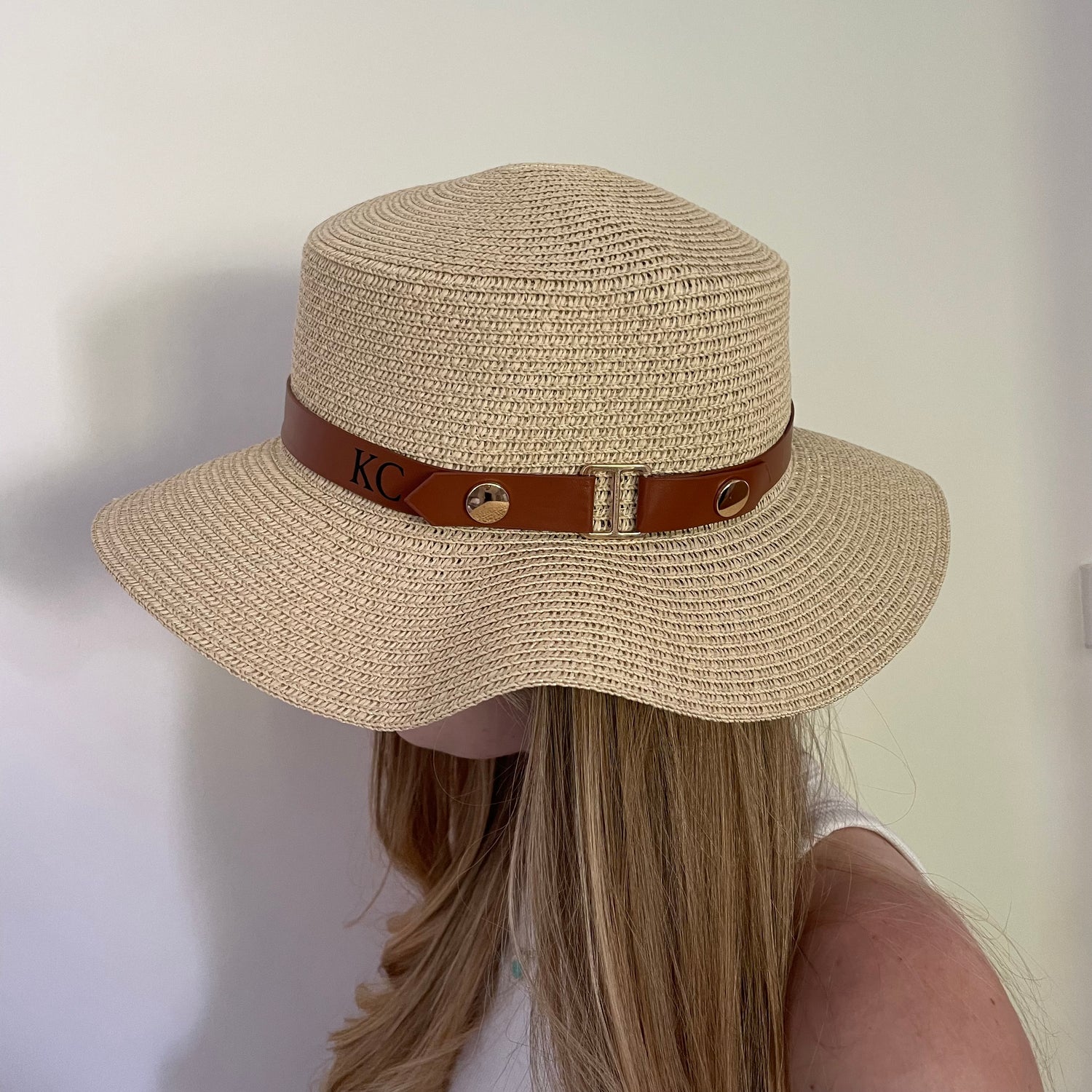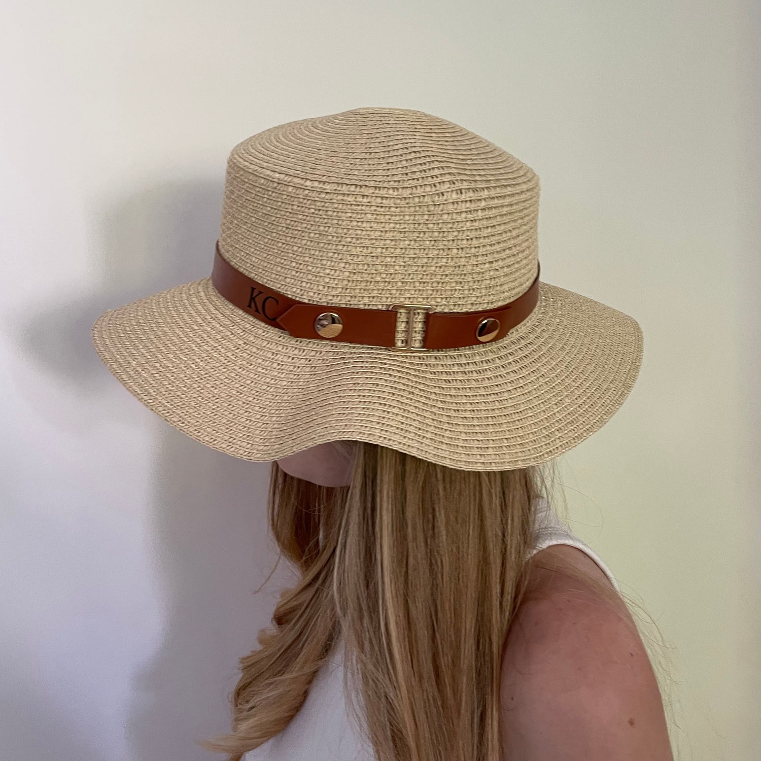 Personalised Initial Faux Leather Monogram Beach Summer Sun Hat Straw Hat