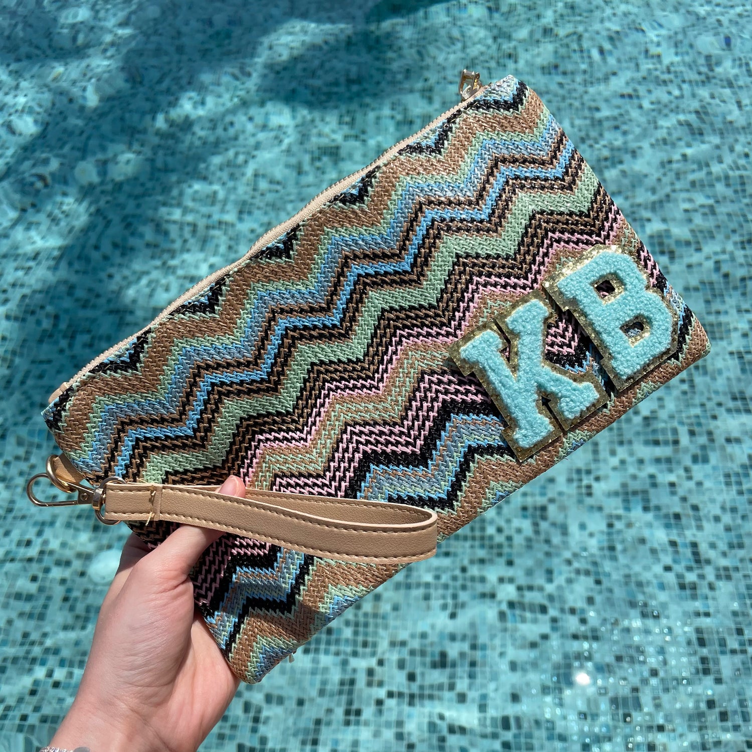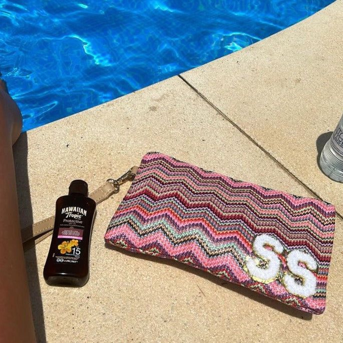 Personalised Chevron Zig Zag Pouch Clutch Patch Toiletry Makeup Cosmetic Bag